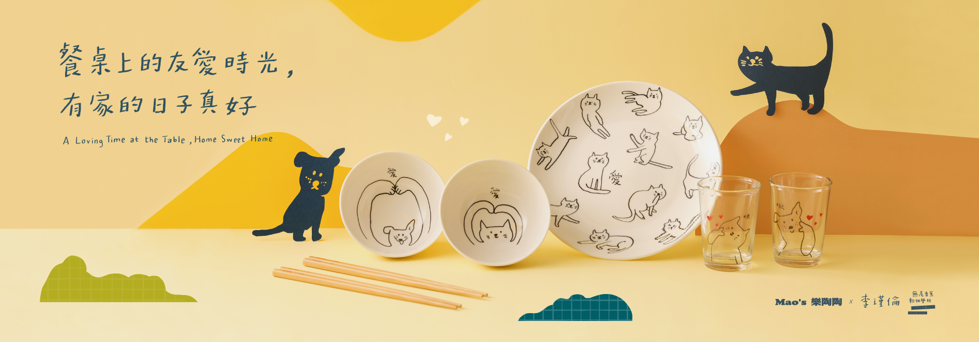 2022年邀請傳達動物友善理念的「皮康PiKang」,為這次的公益計畫創作。將貓狗孩子生活日常的巧妙互動,融入到杯子碗盤中,讓擁有Mao’s樂陶陶的每一天,成為你生活裡的幸福。