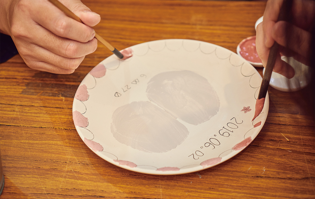 ▲ 0歲以上的寶貝,可選擇將腳印拓印在瓷盤上,創作的同時,記錄著成長的記憶。