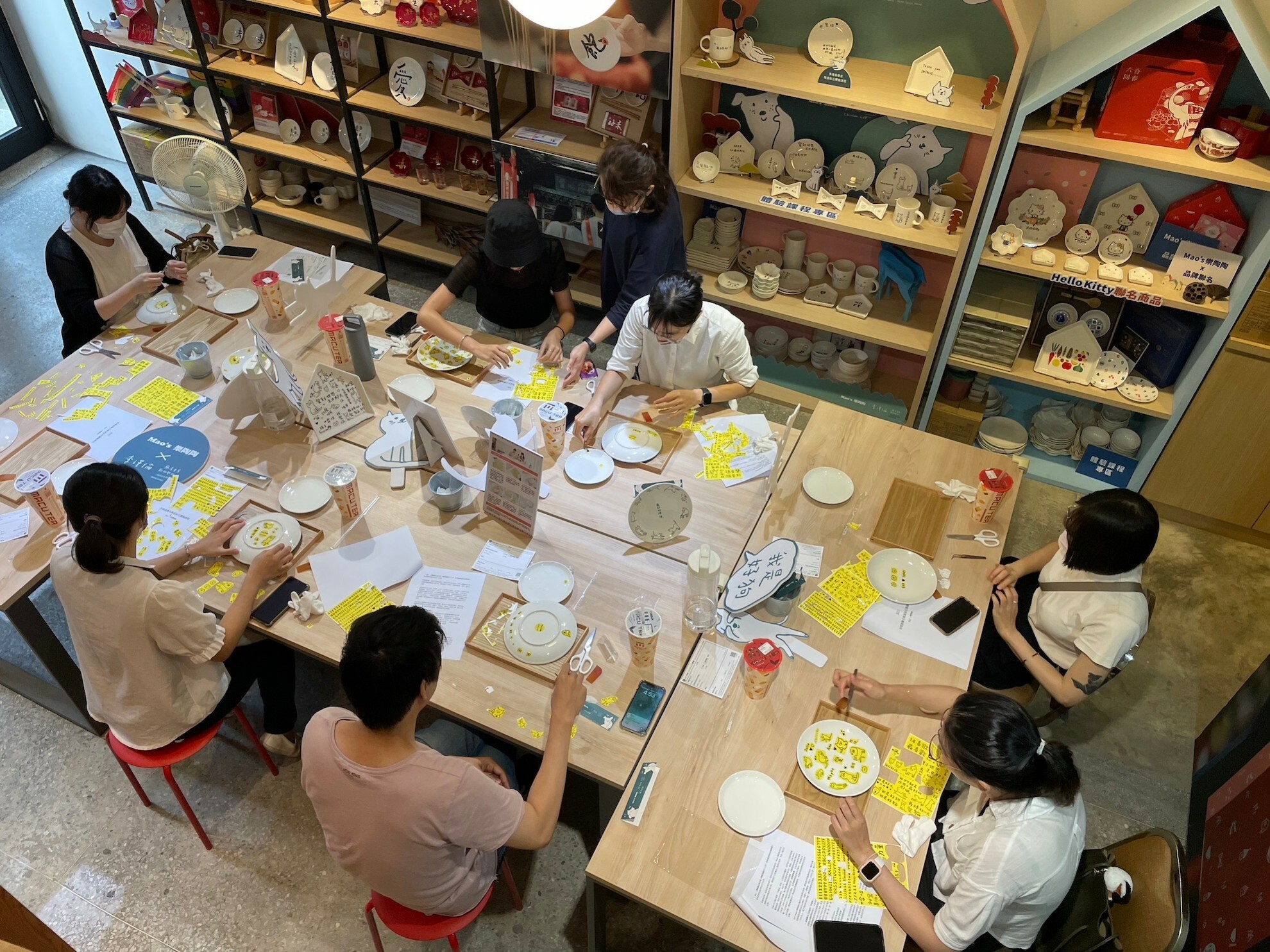 Mao’s樂陶陶的品牌好友大春煉皂團隊們,來鶯歌工廠門市體驗近期推出的李瑾倫聯名陶瓷貼花體驗課。認識瑾倫校長的理念,體驗不一樣的瓷盤創作時光。