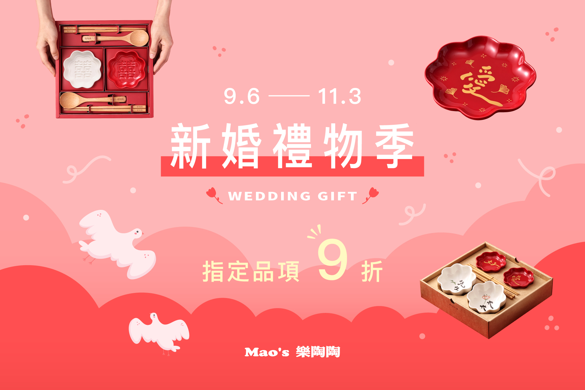 即日起至 2024/11/03,凡購買指定精選新婚禮物即享9折優惠!
