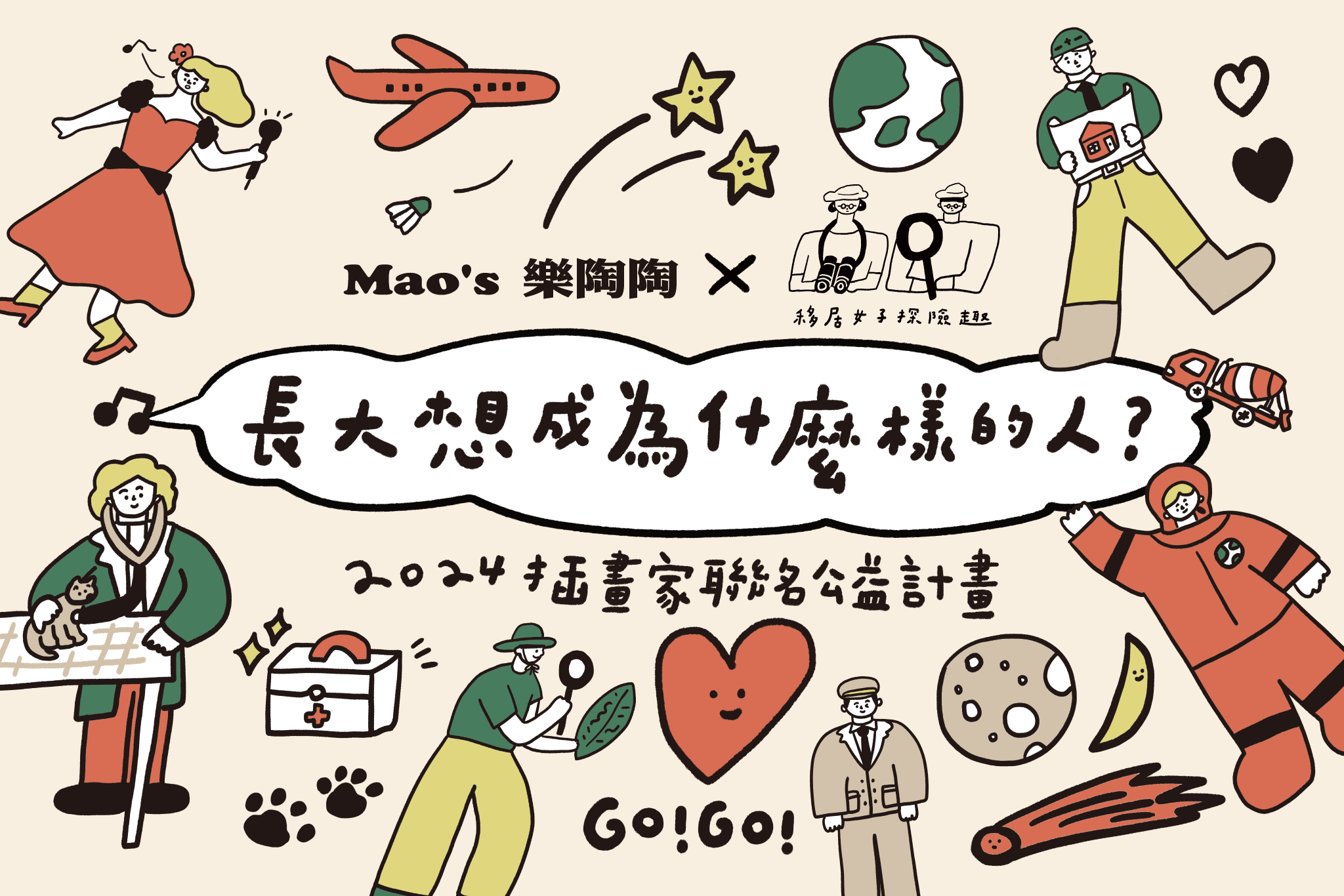 Mao's樂陶陶 x 移居女子探險趣聯名花紙以「長大想成為什麼樣的人呢?」為主題,引導孩子們思考自己喜歡、關心的事物。歡迎與孩子一起至宜蘭傳藝門市共同創作!