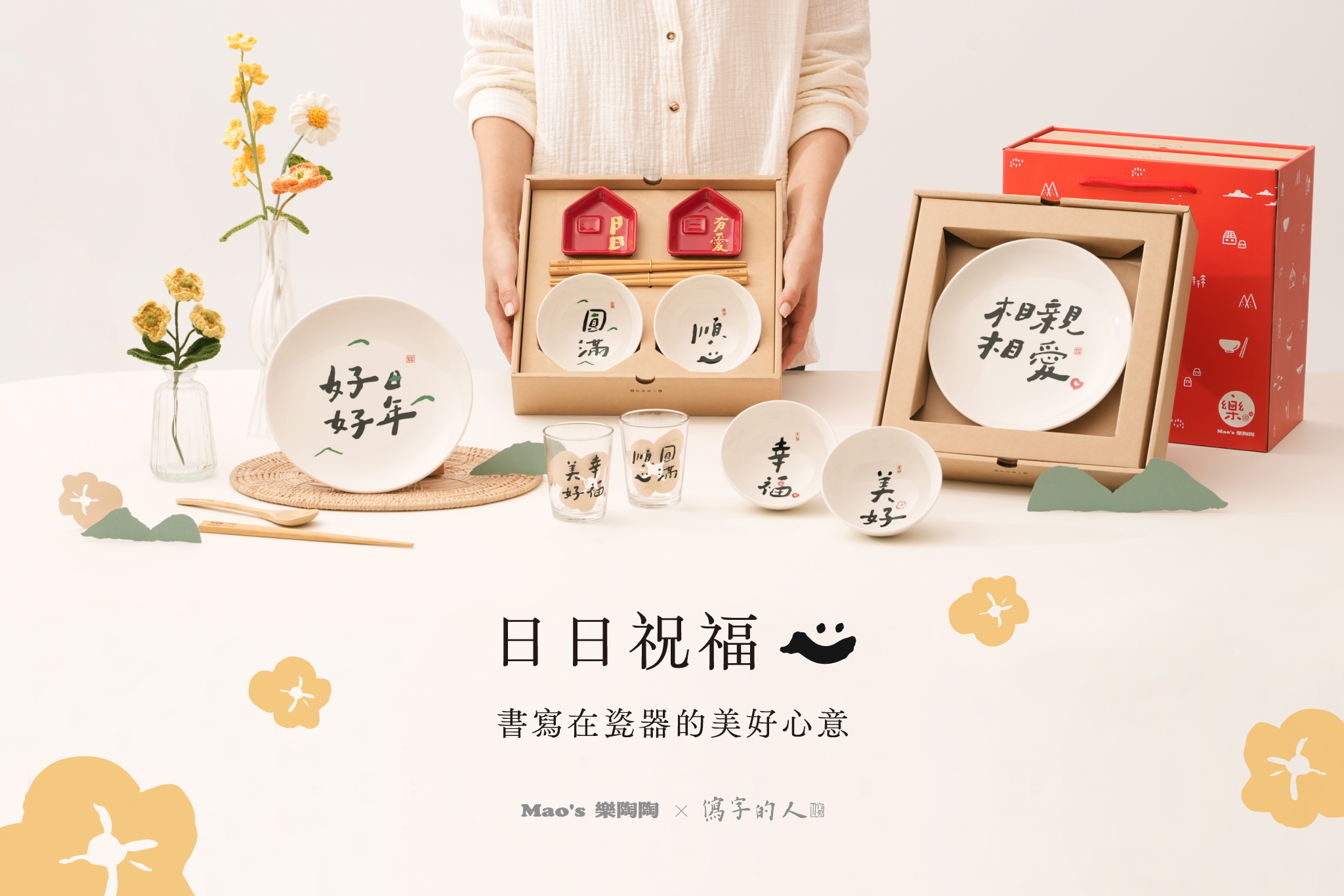 邀請書法藝術家「寫字的人」聯名合作,以書法筆墨詮釋經典的文字祝福碗系列。將「幸福」、「美好」、「圓滿」、「順心」,藉由書法的線條變化與圖像設計點綴結合傳遞心意。