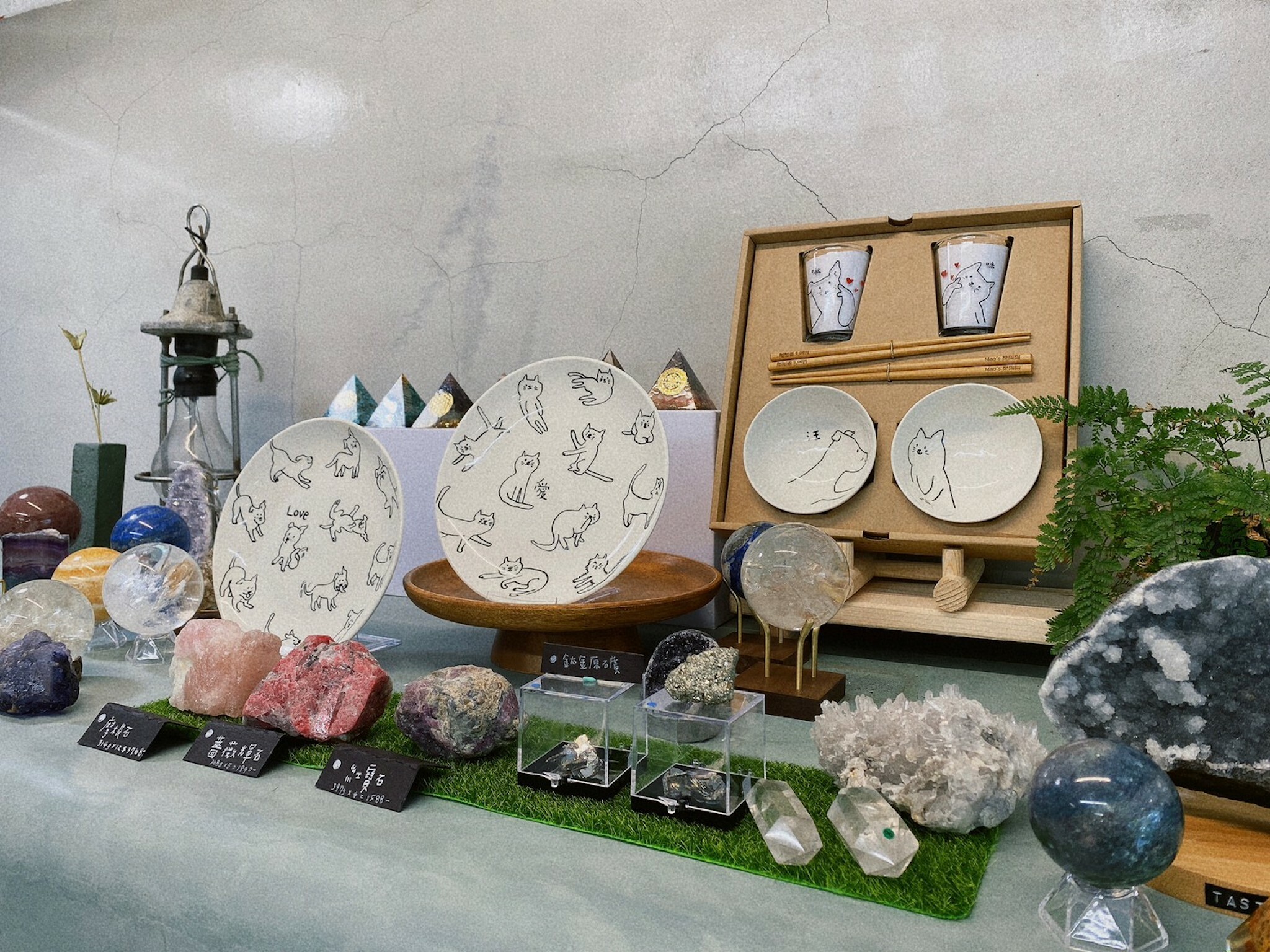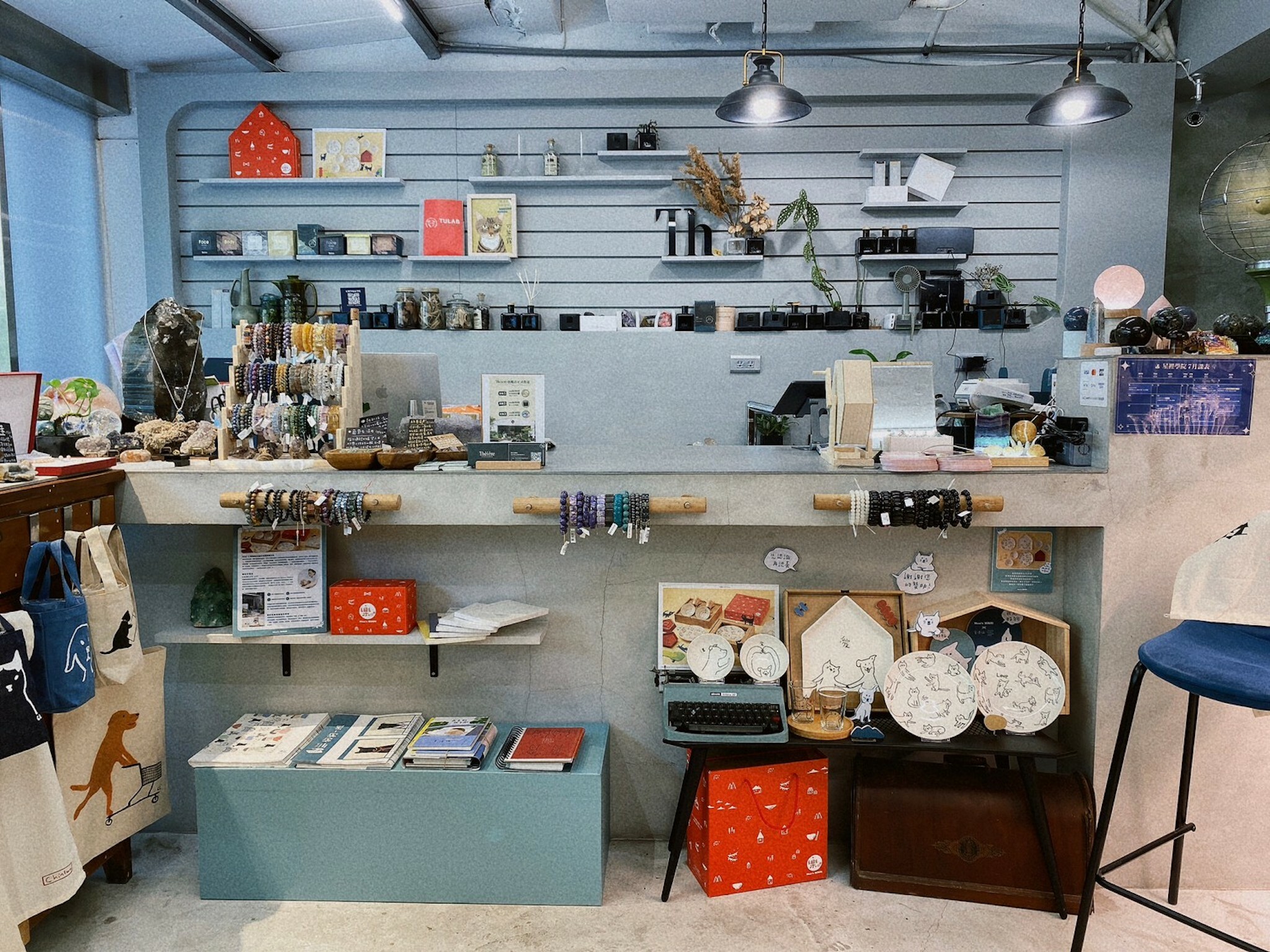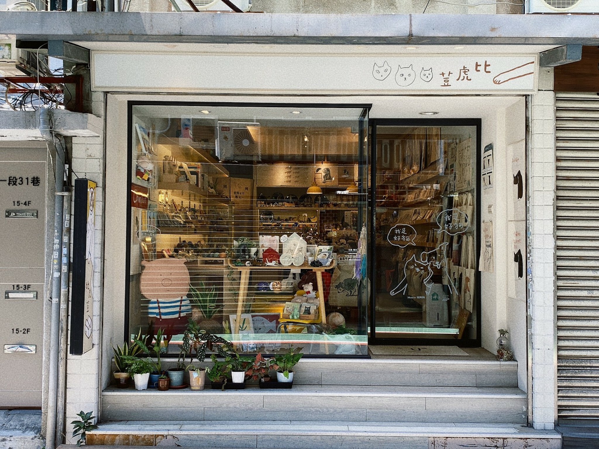 本東倉庫比虎荳商店位在台北市大安區,是一間動物友善商店,在店門口可以看見可愛的櫥窗上有李瑾倫的創作圖像-繪本、海報、明信片,走進店裡還有販售多種樣式的水晶!