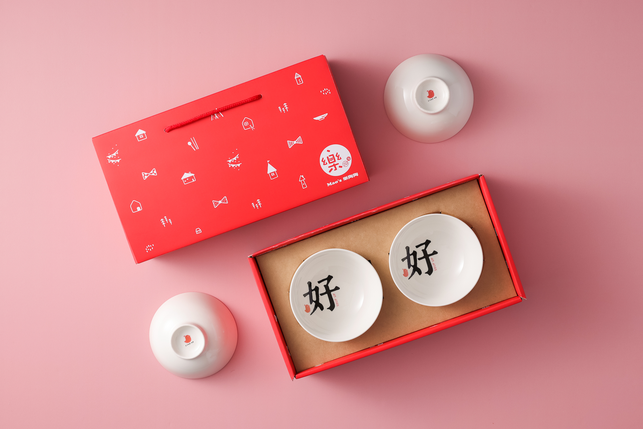 今年春節,專注雞湯的中式品牌-好好食房Soup Up,將雞湯包與Mao’s樂陶陶合作製作「好好」雙碗的春節禮贈品組合。從Mao’s樂陶陶自有商品-祝福系列的「好」字,結合好好食房的品牌識別設計,讓好好雙碗除了餐具品質用得好好,搭配雞湯後的味覺感受還有吃得好好!