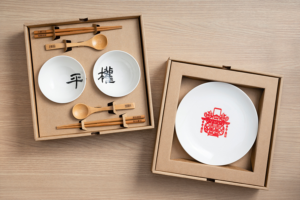 「同婚宴平權碗盤組」,同婚宴紀念禮盒象徵著「多元性別」x「平權」的願景,與性別運動一路走來的步步甘苦,希望能讓平等友善的希望,伴你日日飽餐,並一起許諾為更美好、更平等的台灣繼續努力。