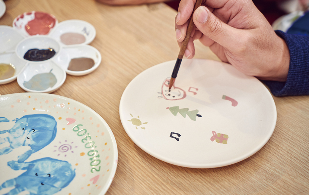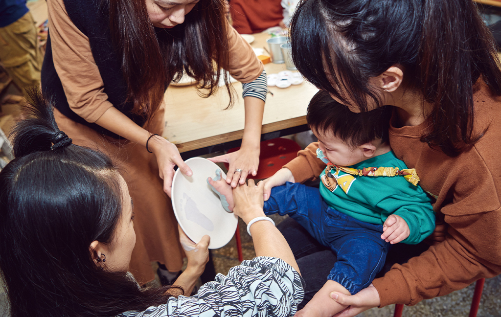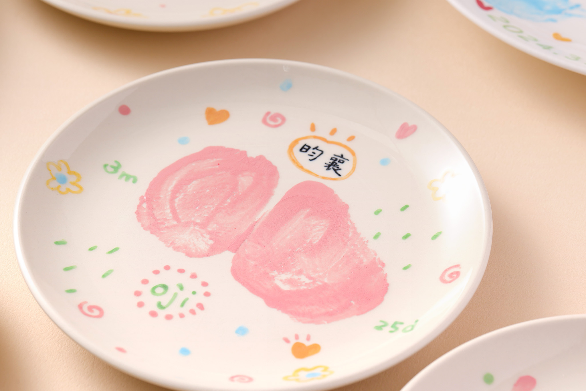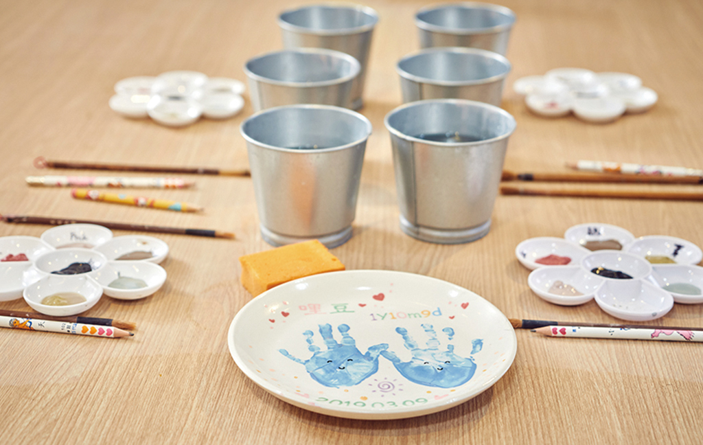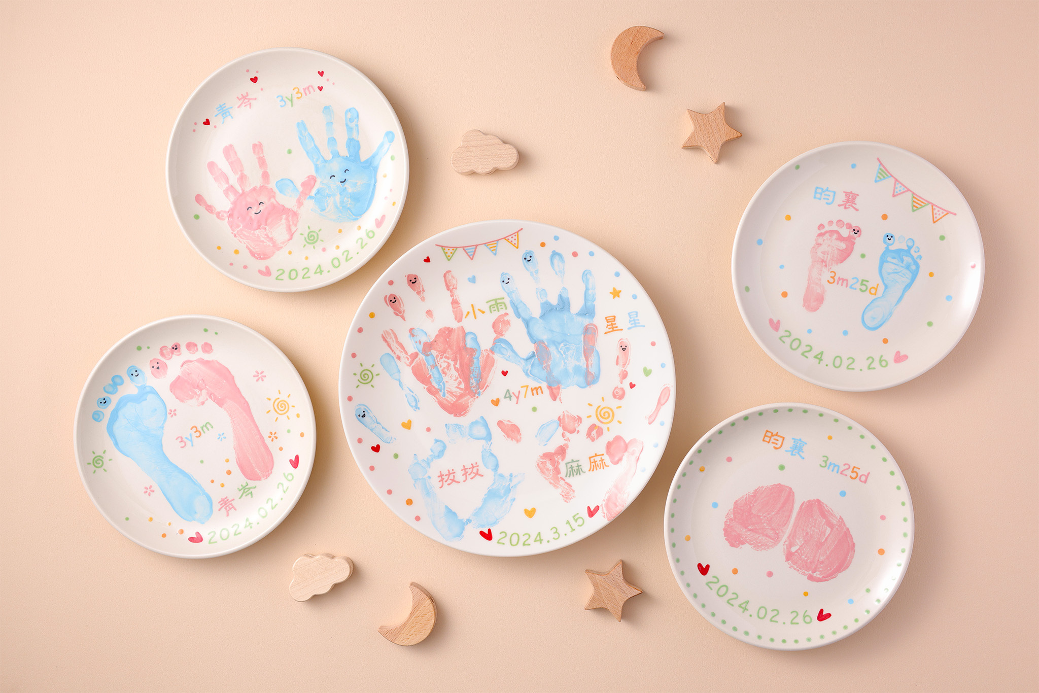 ▲ 0歲以上的寶貝,可選擇將腳印拓印在瓷盤上,創作的同時,記錄著成長的記憶。