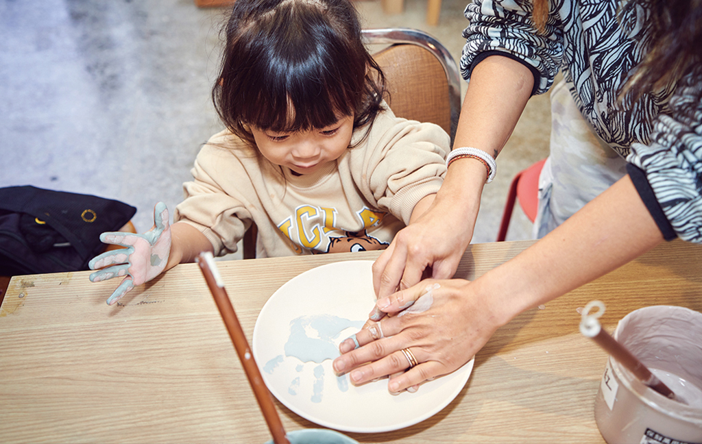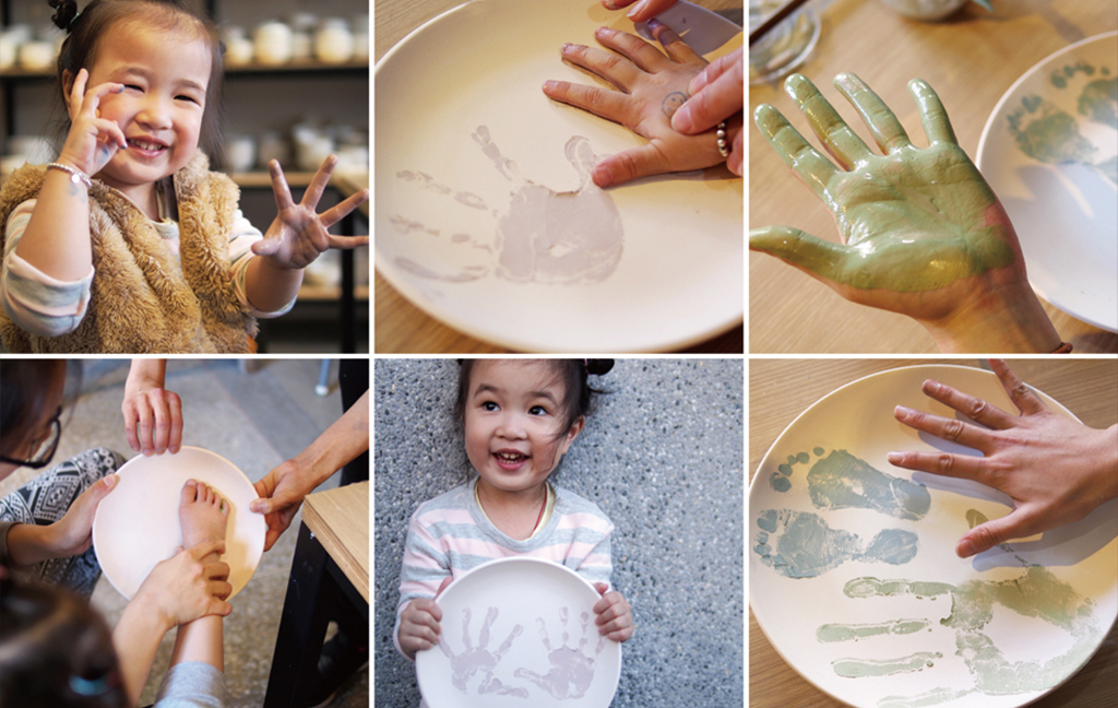 ▲ 1歲以上的寶貝,可選擇將手印拓印在瓷盤上,創作的同時,體驗瓷土的觸感。