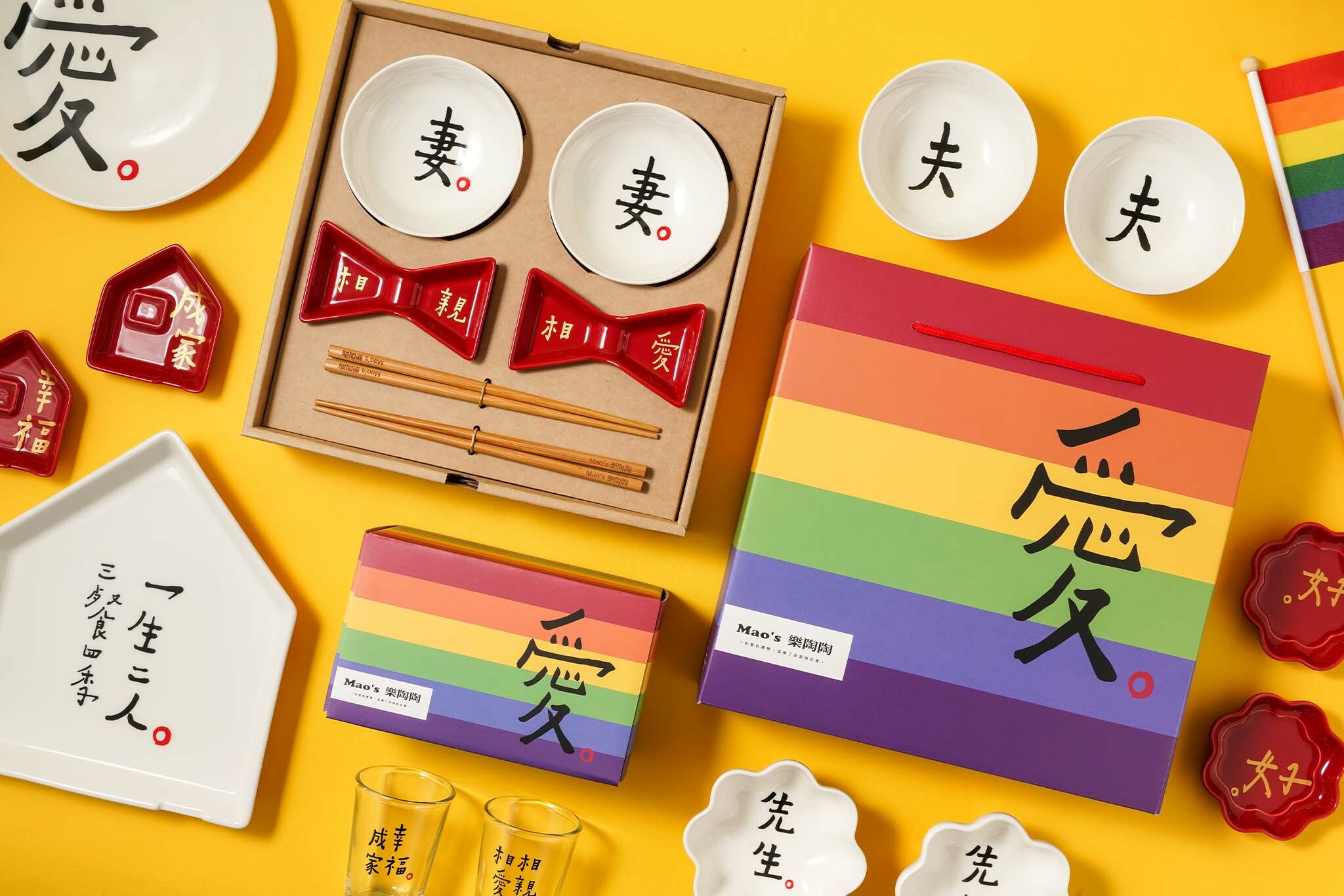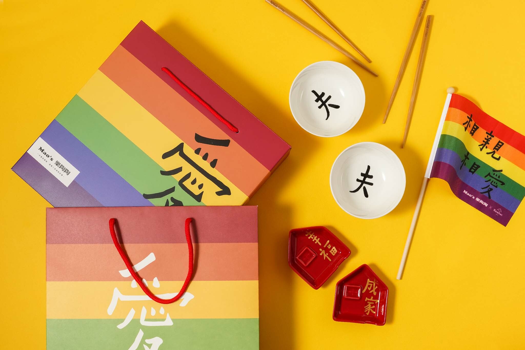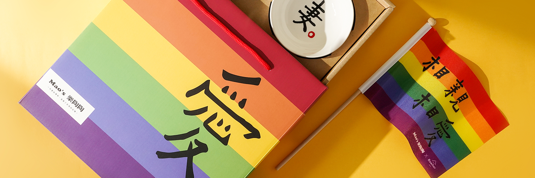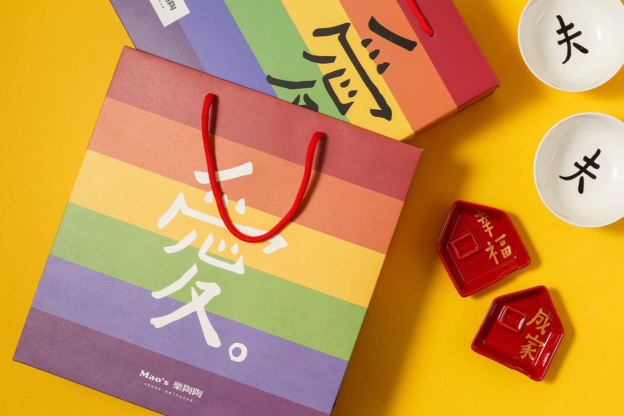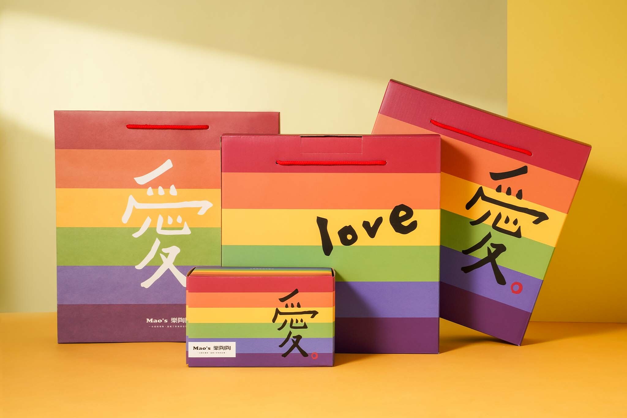 3.凡隨商品禮盒加購彩虹紙袋,「Mao's樂陶陶」會將紙袋銷售所得3%捐款至「台灣伴侶權益推動聯盟」,持續為性別平權努力。