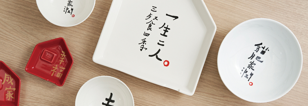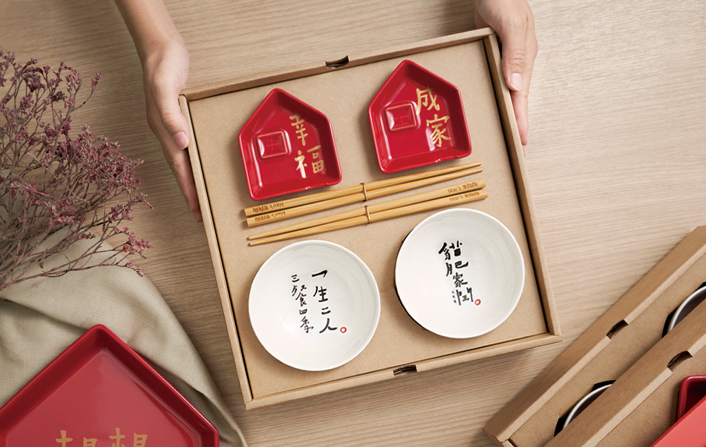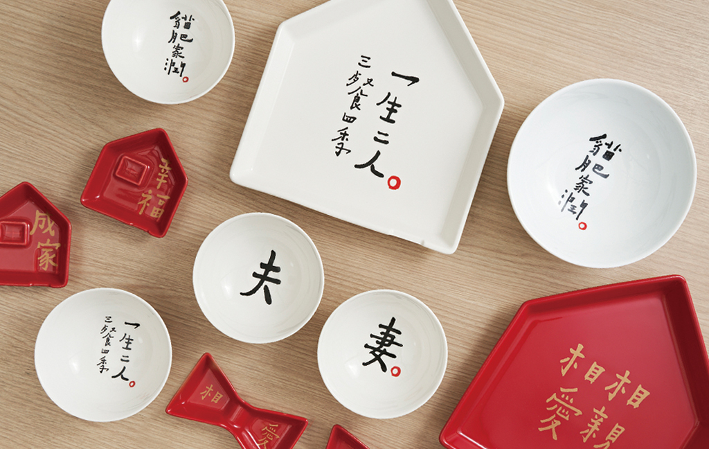 「Mao's 樂陶陶」邀請到書法詩人「何景窗」老師為年度新品題字,寫下「相親相愛」、「幸福成家」字句,