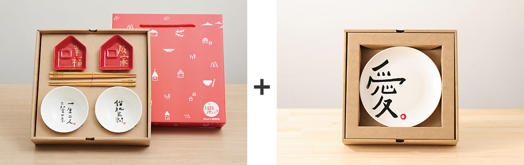 • 內容物:小碗2入、小房子醬油碟2入、筷子2雙、愛盤1入、雙層提盒式禮盒1入 •