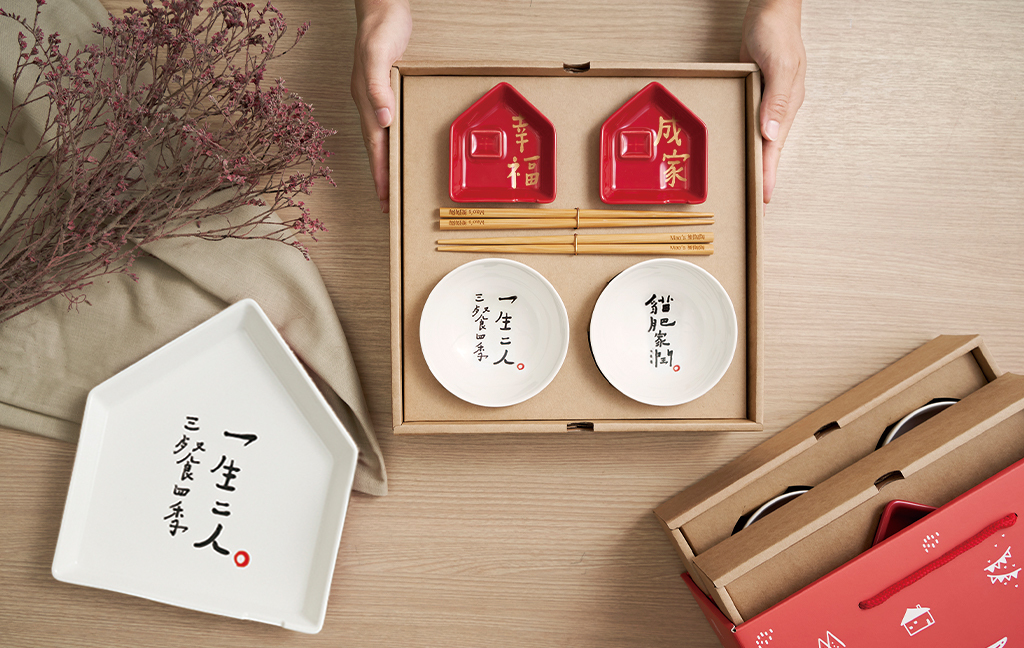 ▲ 加購一生二人大房子餐盤、相親相愛玻璃杯組,讓您的祝福更加美滿。