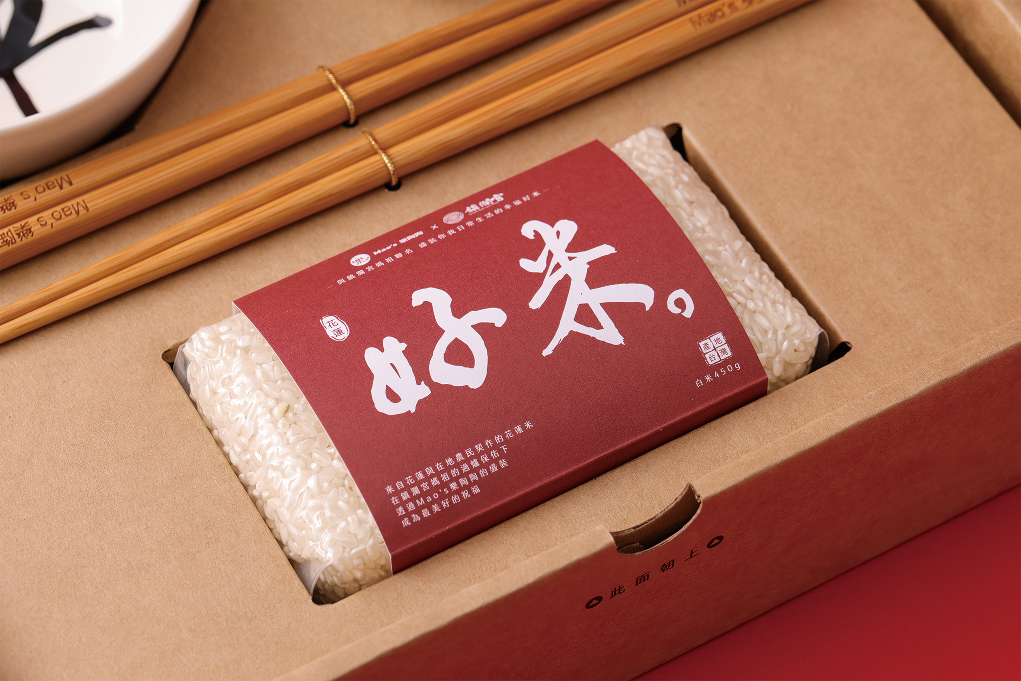 來自花蓮與在地農民契作的花蓮米,在鎮瀾宮媽祖的過爐保佑下,透過Mao’s樂陶陶的盛裝,成為最美好的祝福。