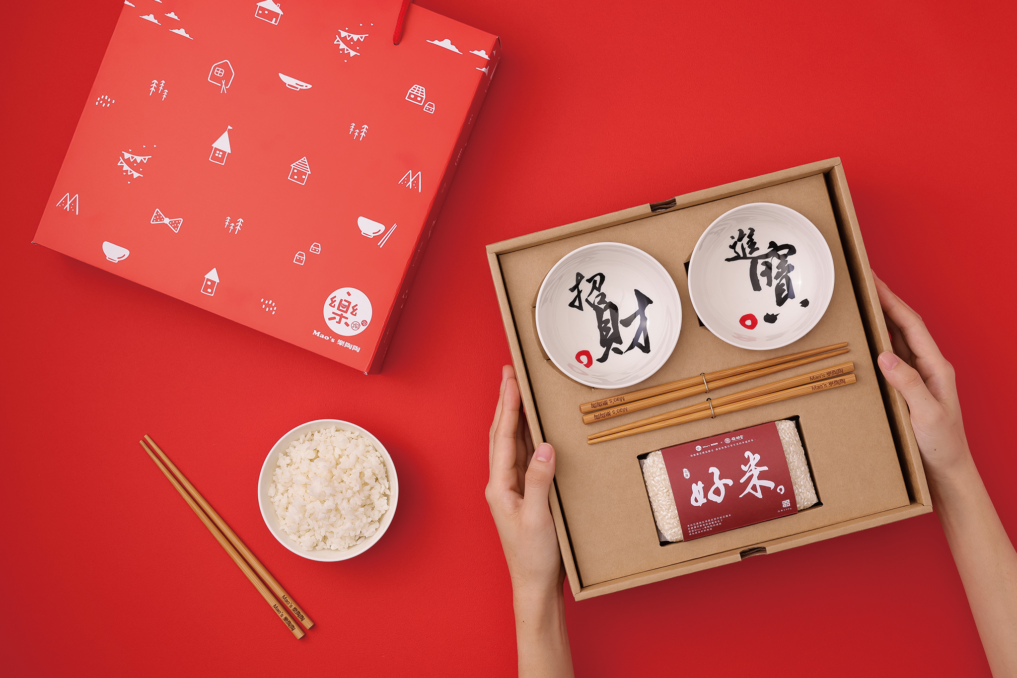 • 內容物:小碗2入、白米1包、筷子2雙、提盒式禮盒1入 •