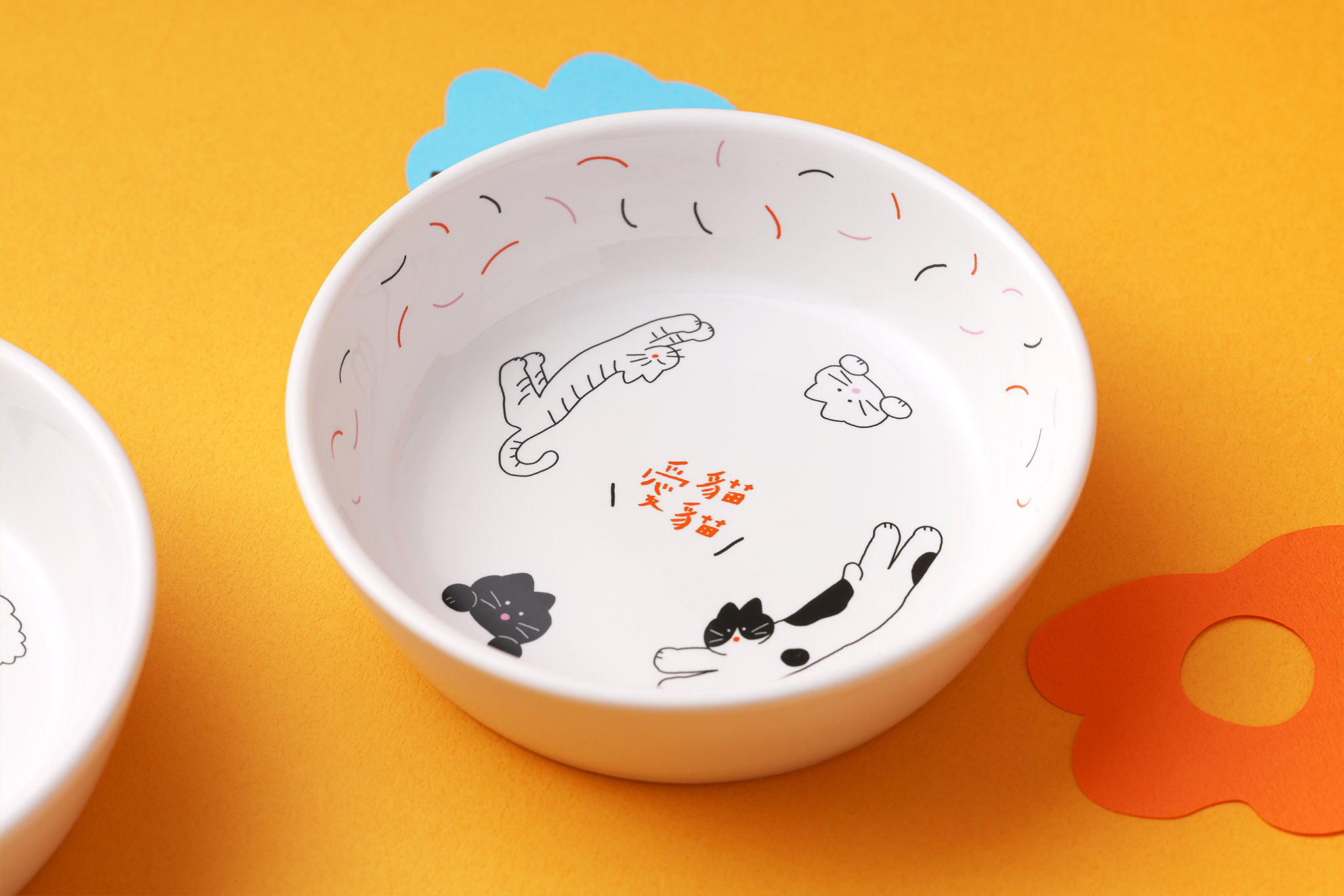 ▲ 貓貓寵物碗,四隻貓貓圍繞成圈,碗裡一圈貓毛,溫柔的陪伴,一起伸伸懶腰愛貓貓。