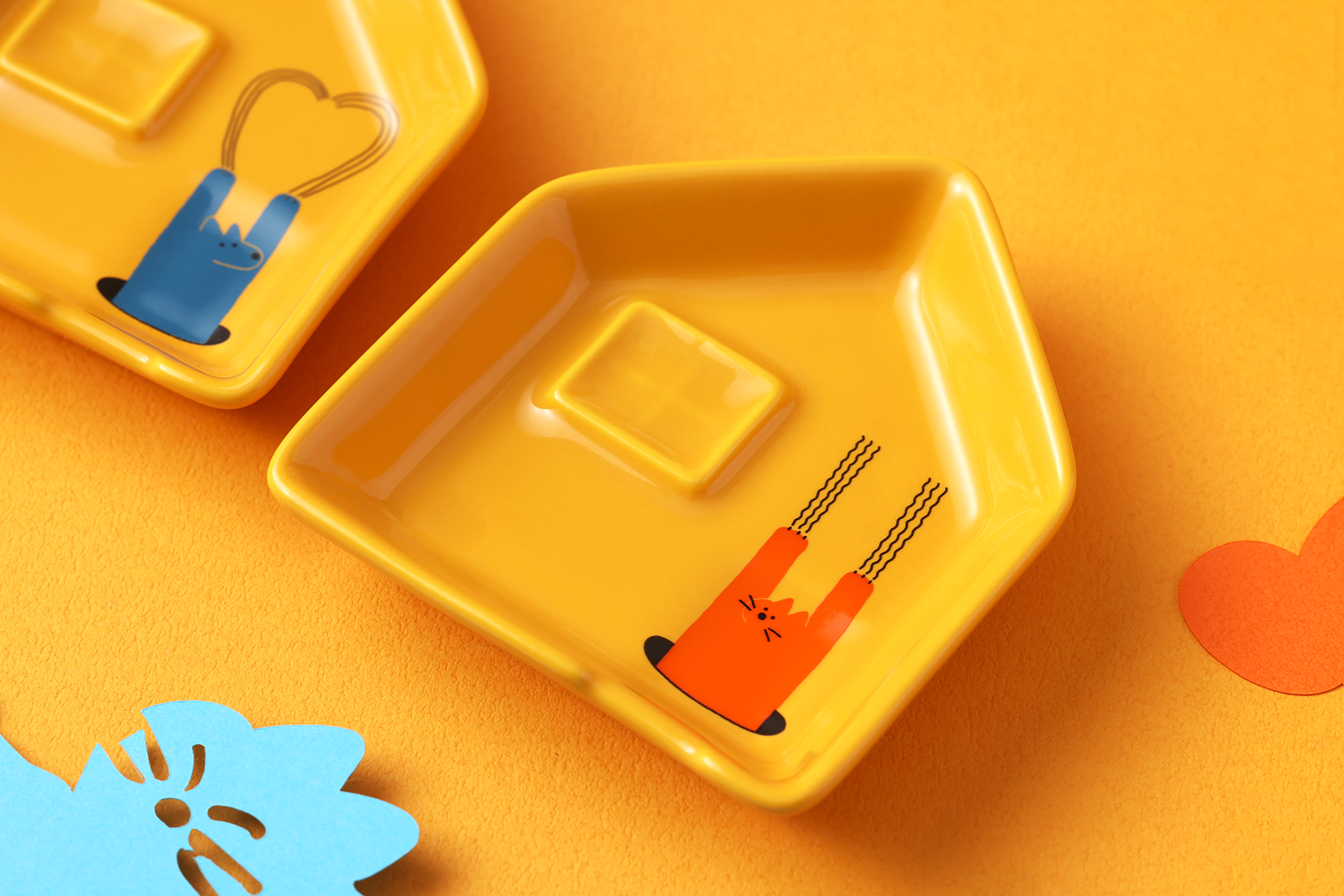 ▲ 貓貓狗狗小房子醬油碟,透過插畫家「Minghan H.」的畫筆,讓貓貓、狗狗示出對你獨一無二的愛。