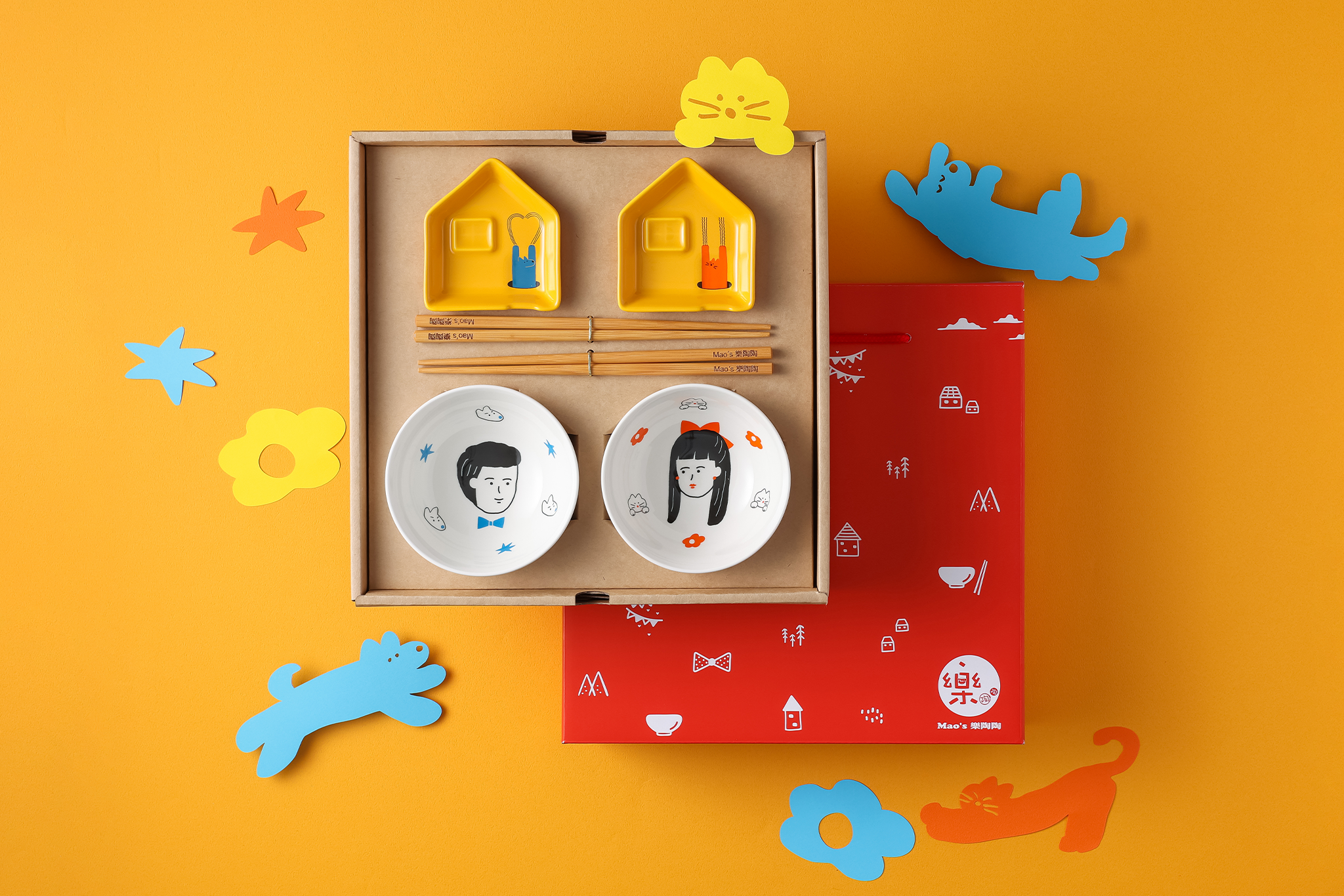 • 內容物:小碗2入、小房子醬油碟2入、筷子2雙、提盒式禮盒1入 •
