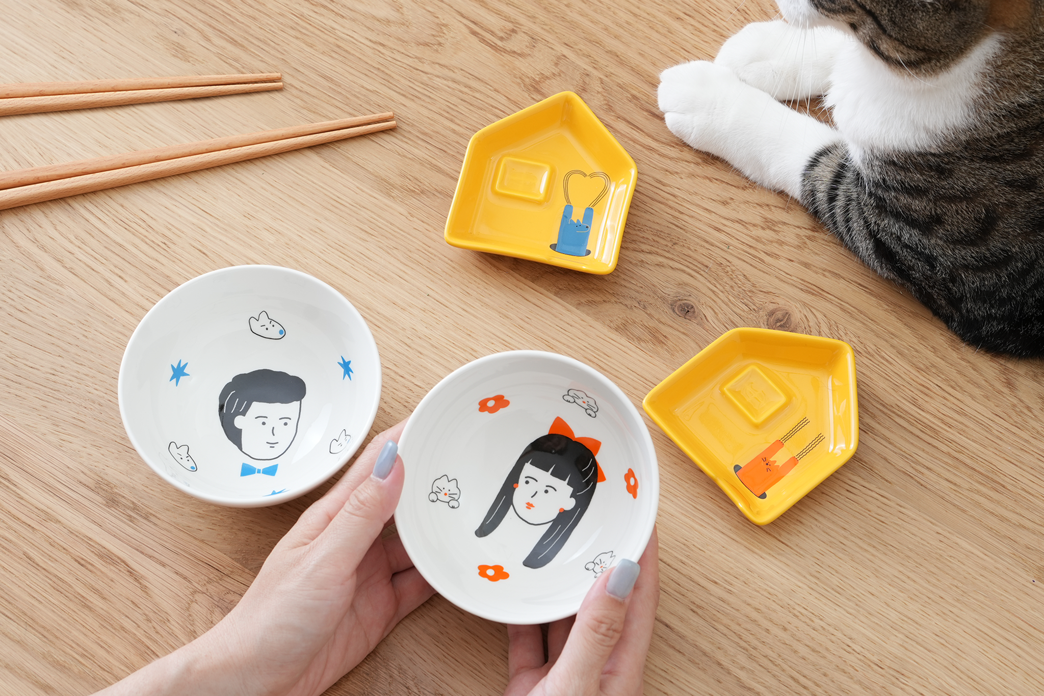 ▲ 貓貓狗狗小房子醬油碟,透過插畫家「Minghan H.」的畫筆,讓貓貓、狗狗示出對你獨一無二的愛。