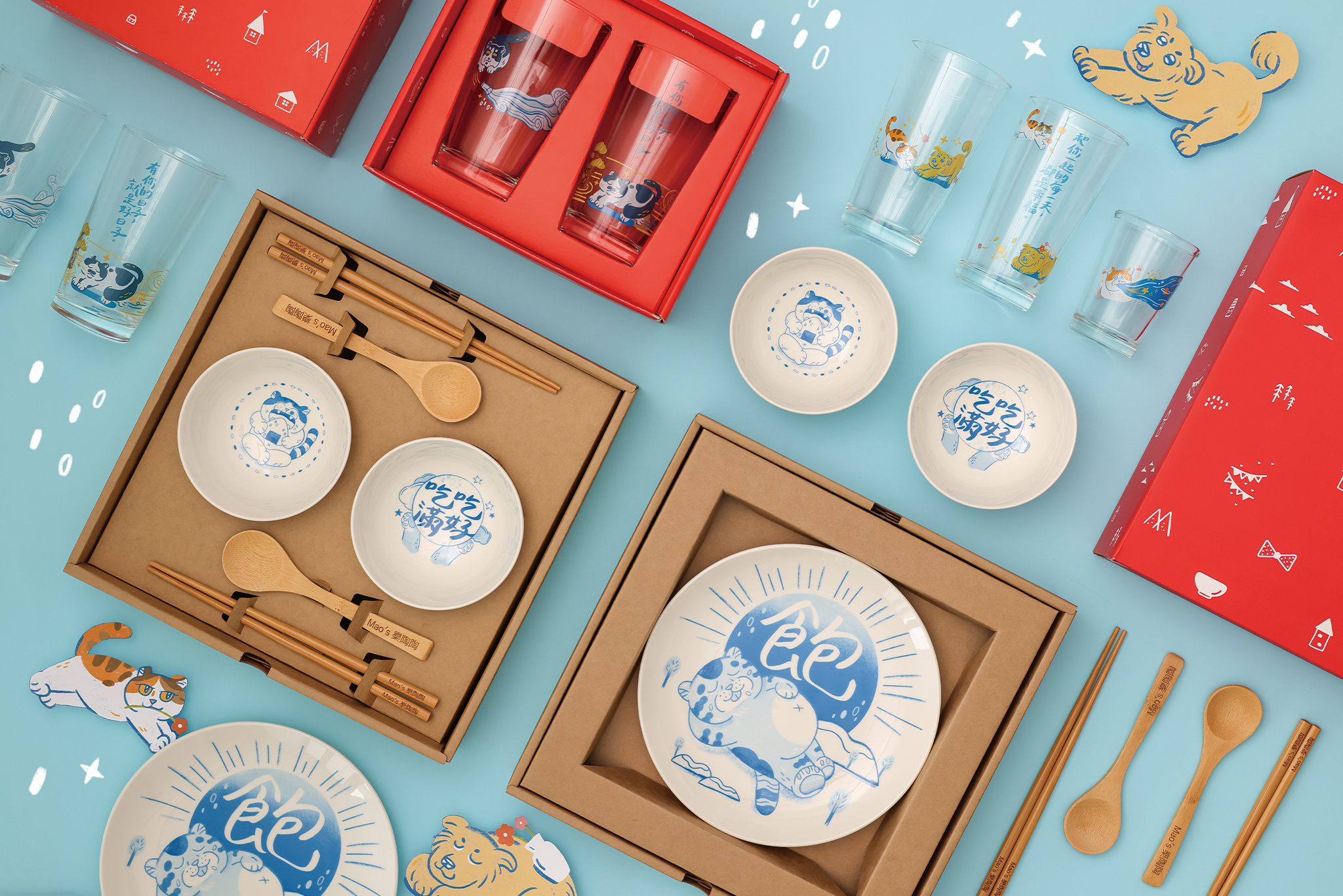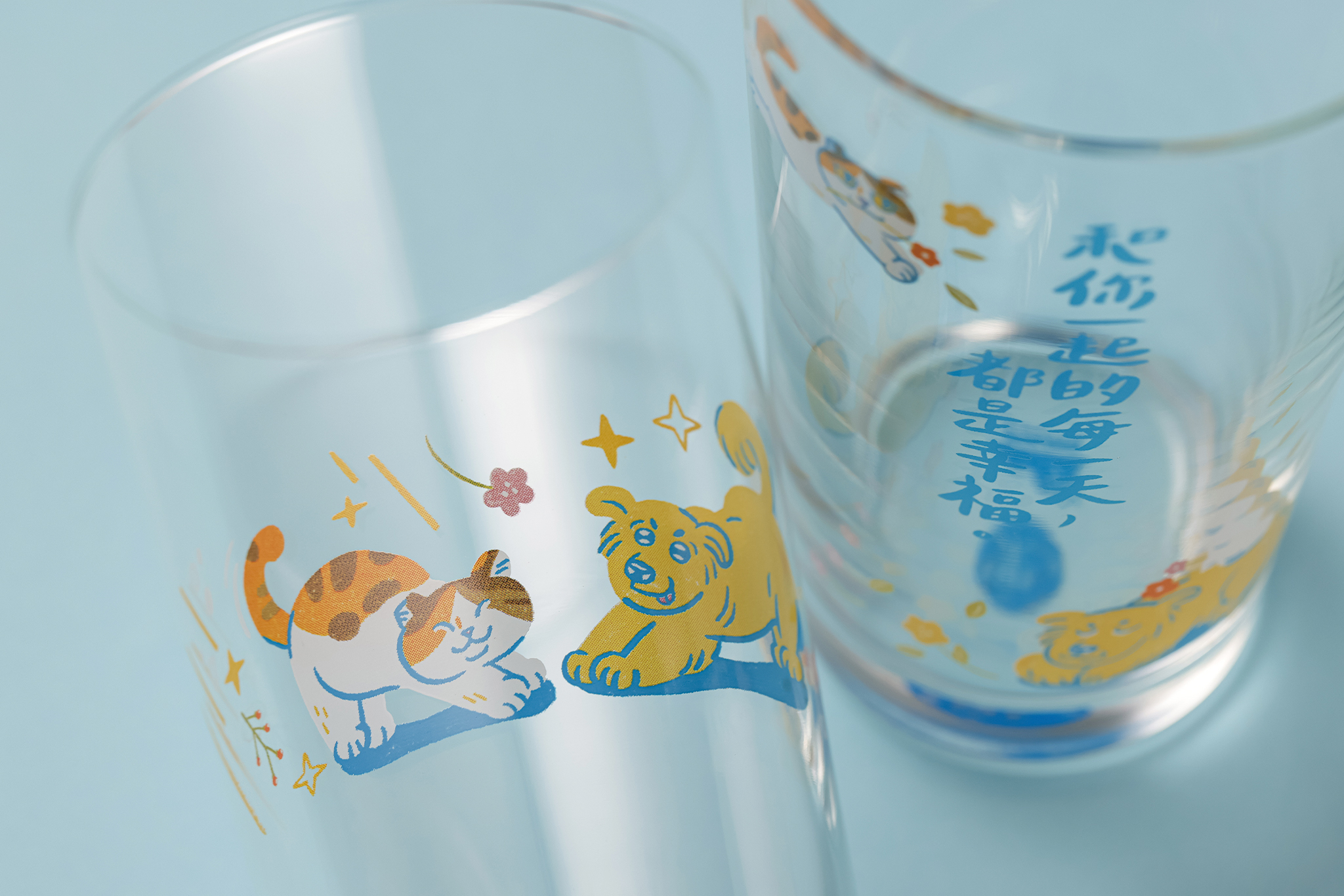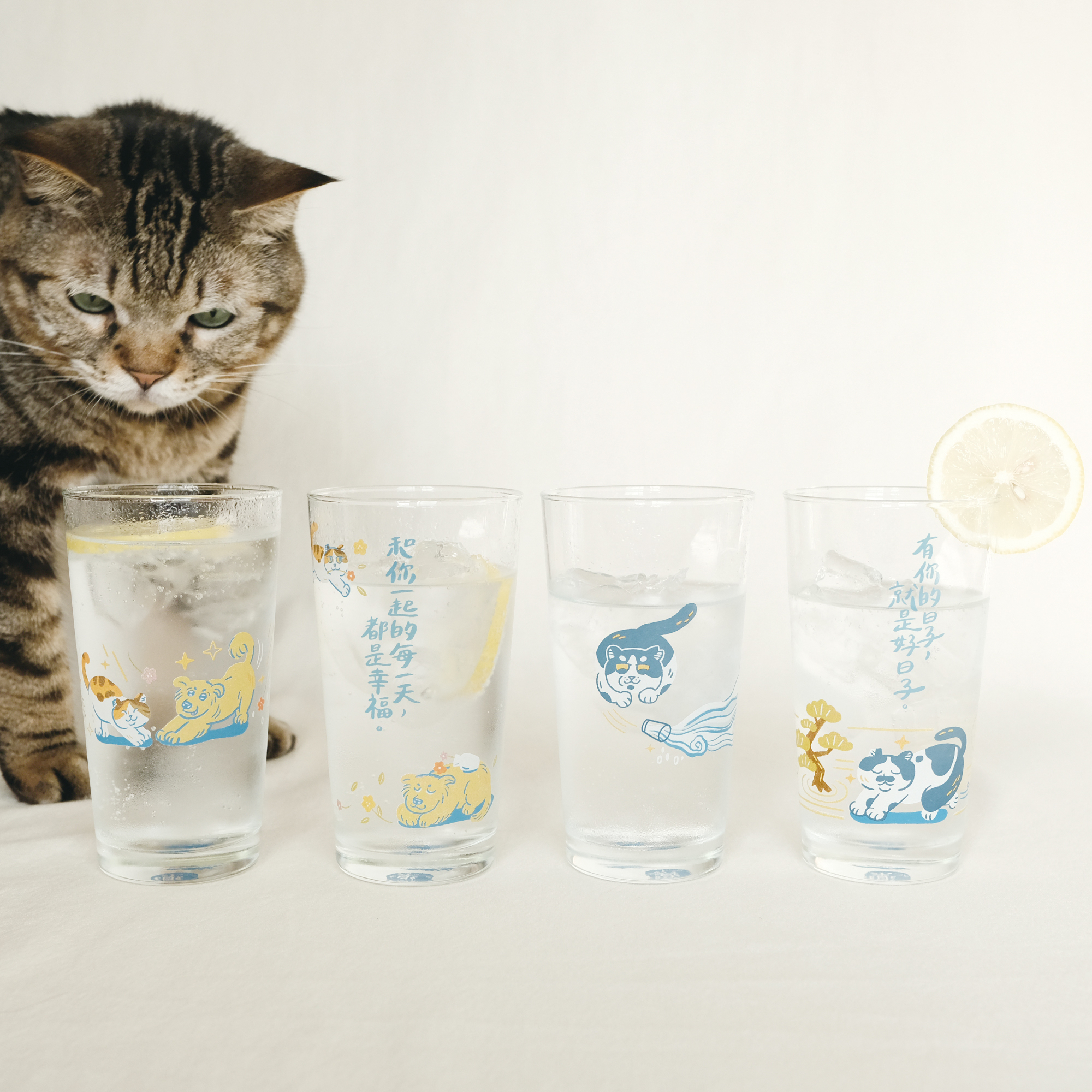 ▲ 有你的每一天玻璃杯組,運用日式畫風,讓「皮康PiKang」的圖像,一同餵飽你的貓狗日常。