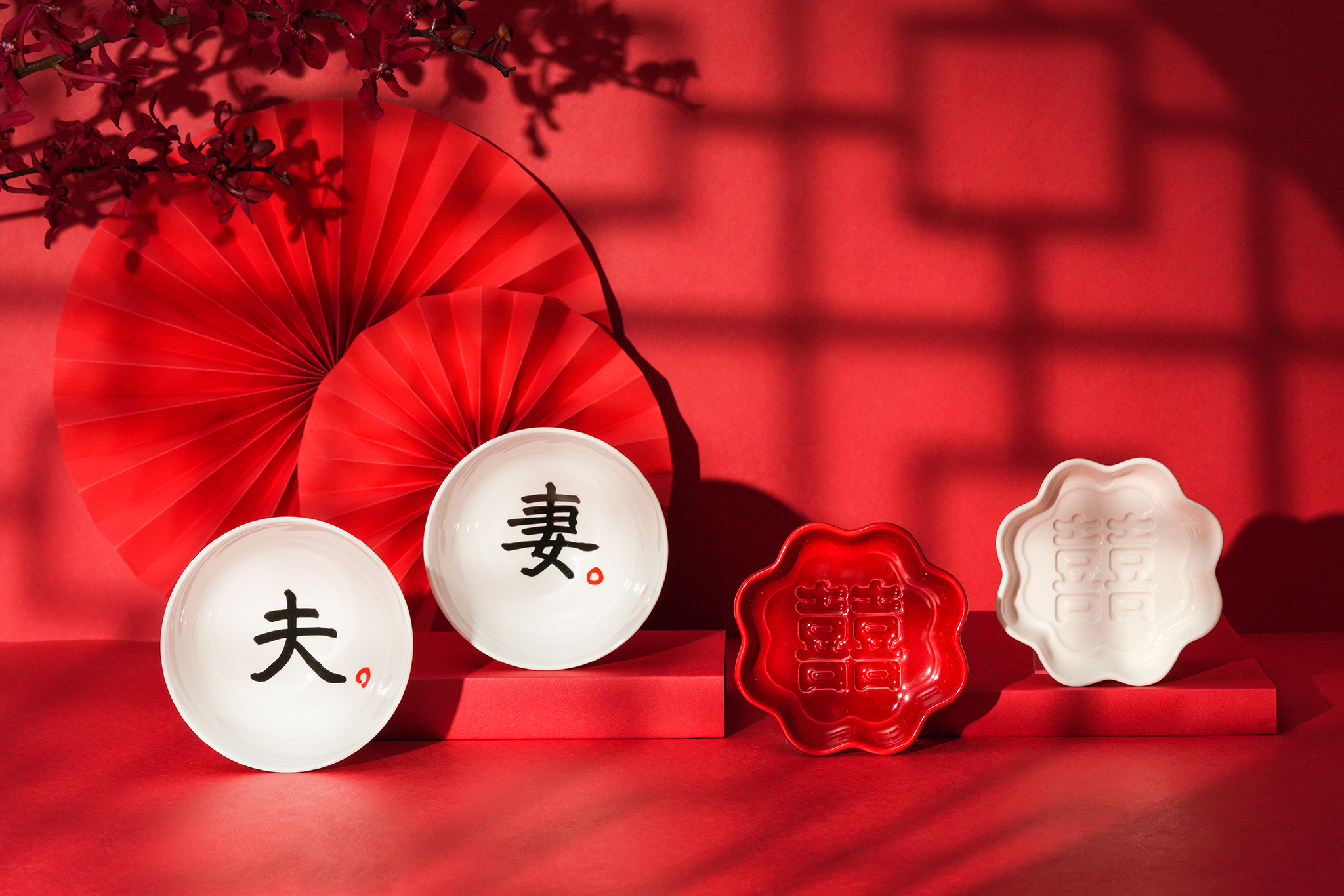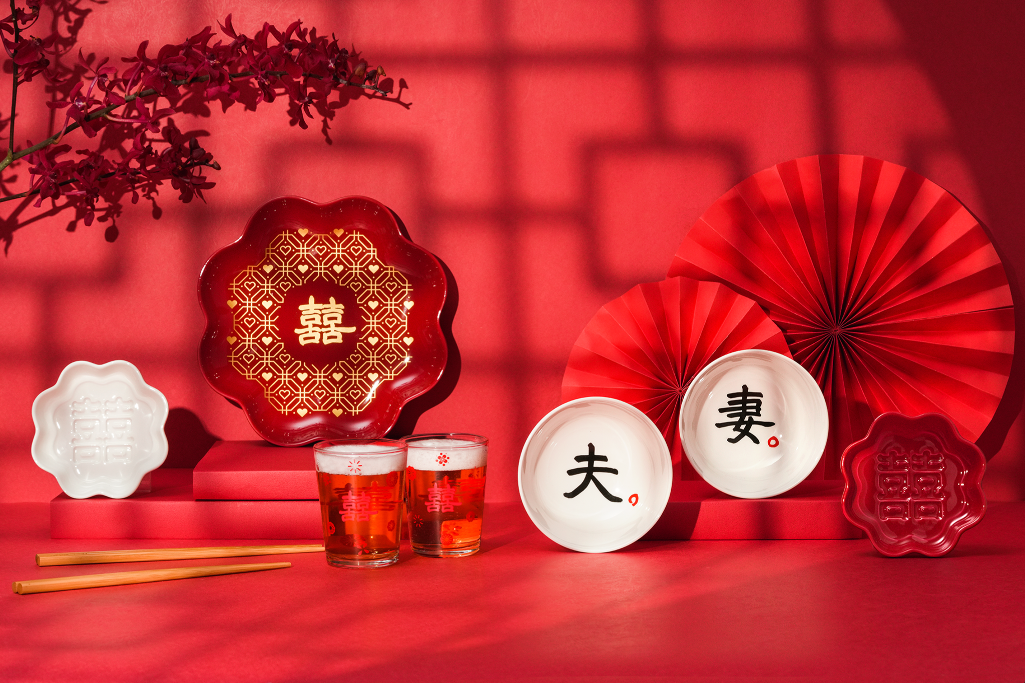 • 花見醬油碟:紅囍/白囍