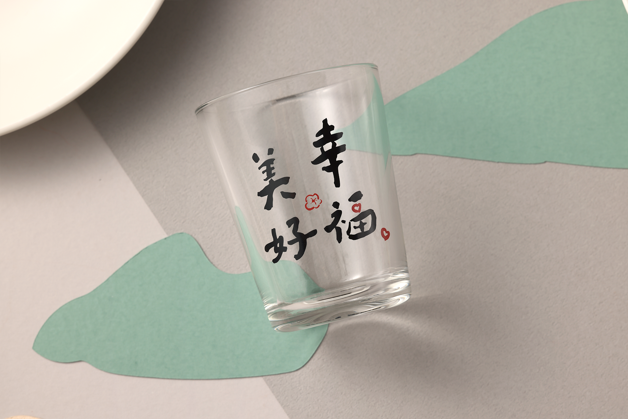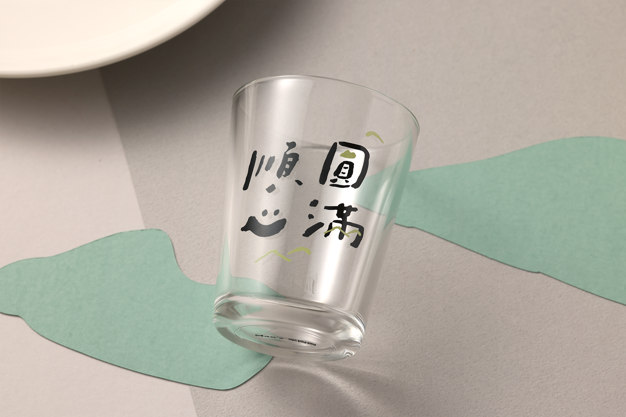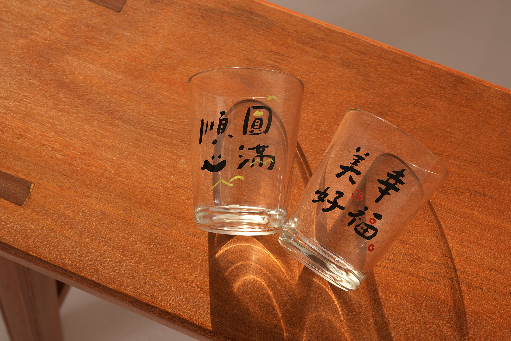 ▲ 日日祝福玻璃杯,由書法藝術「寫字的人」書寫詮釋,為您盛裝更多幸福的滋味。