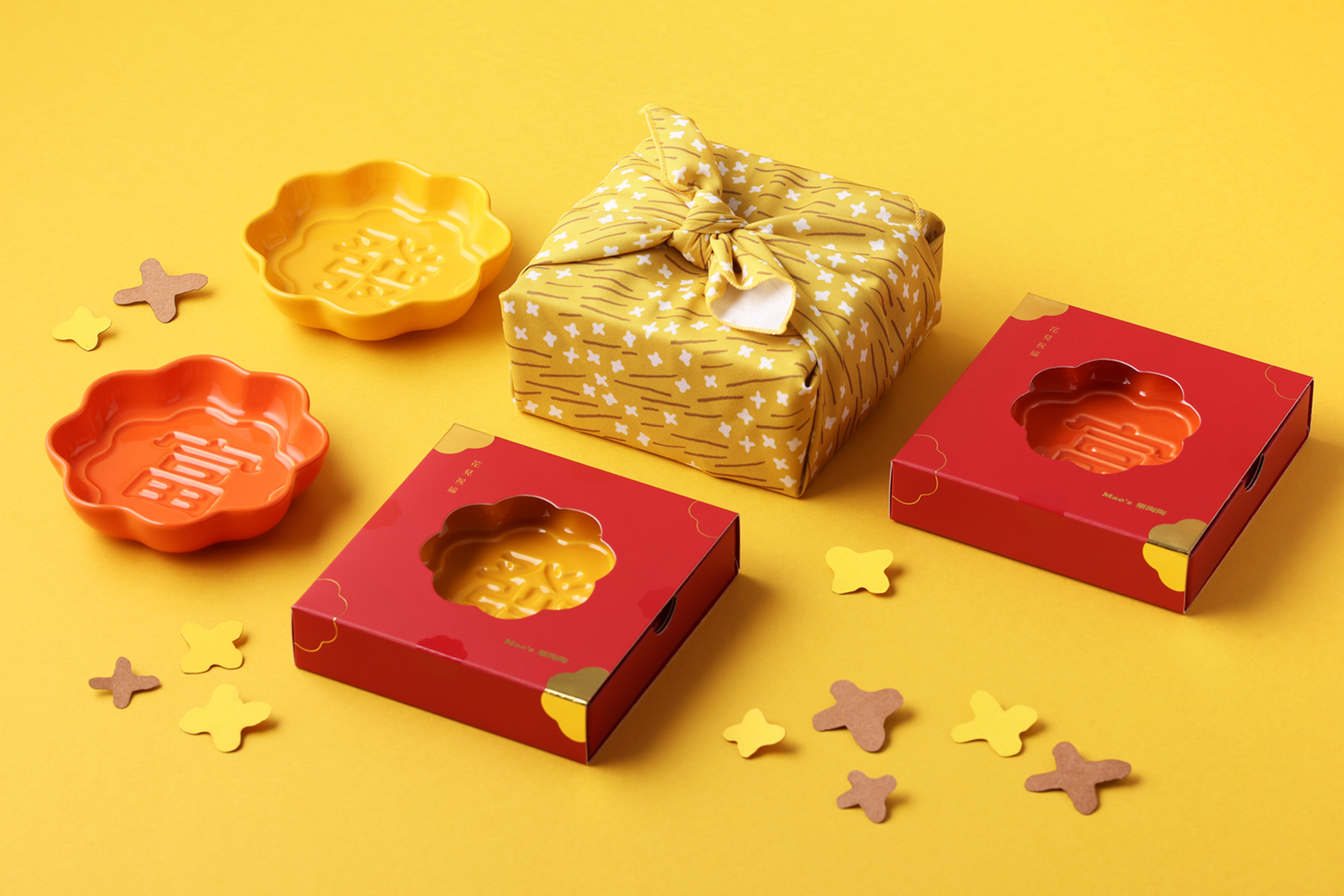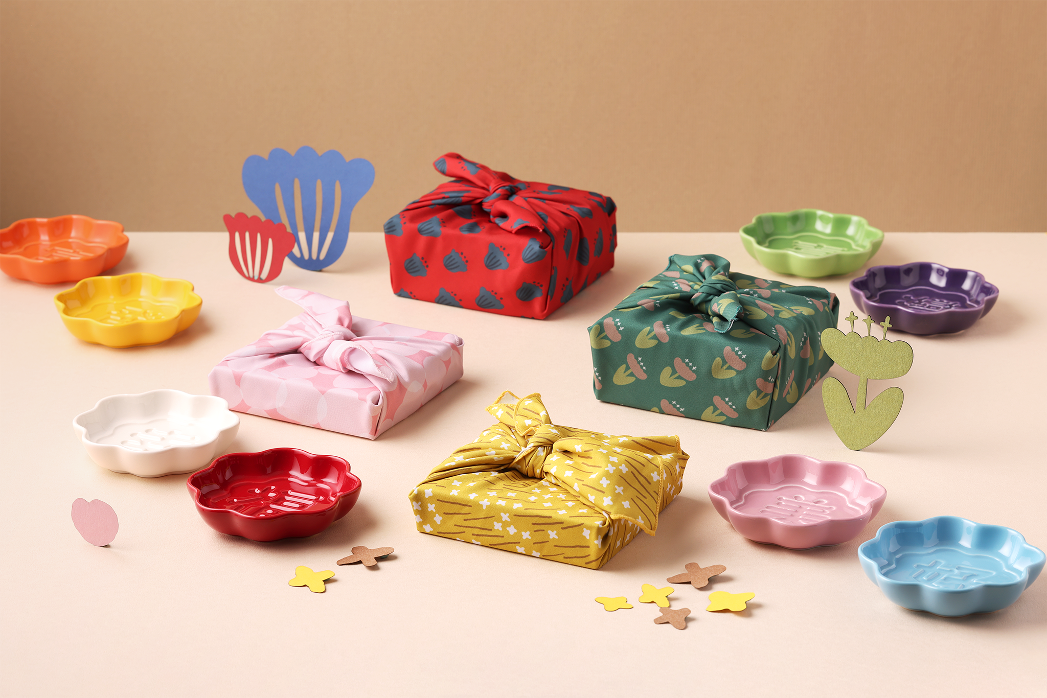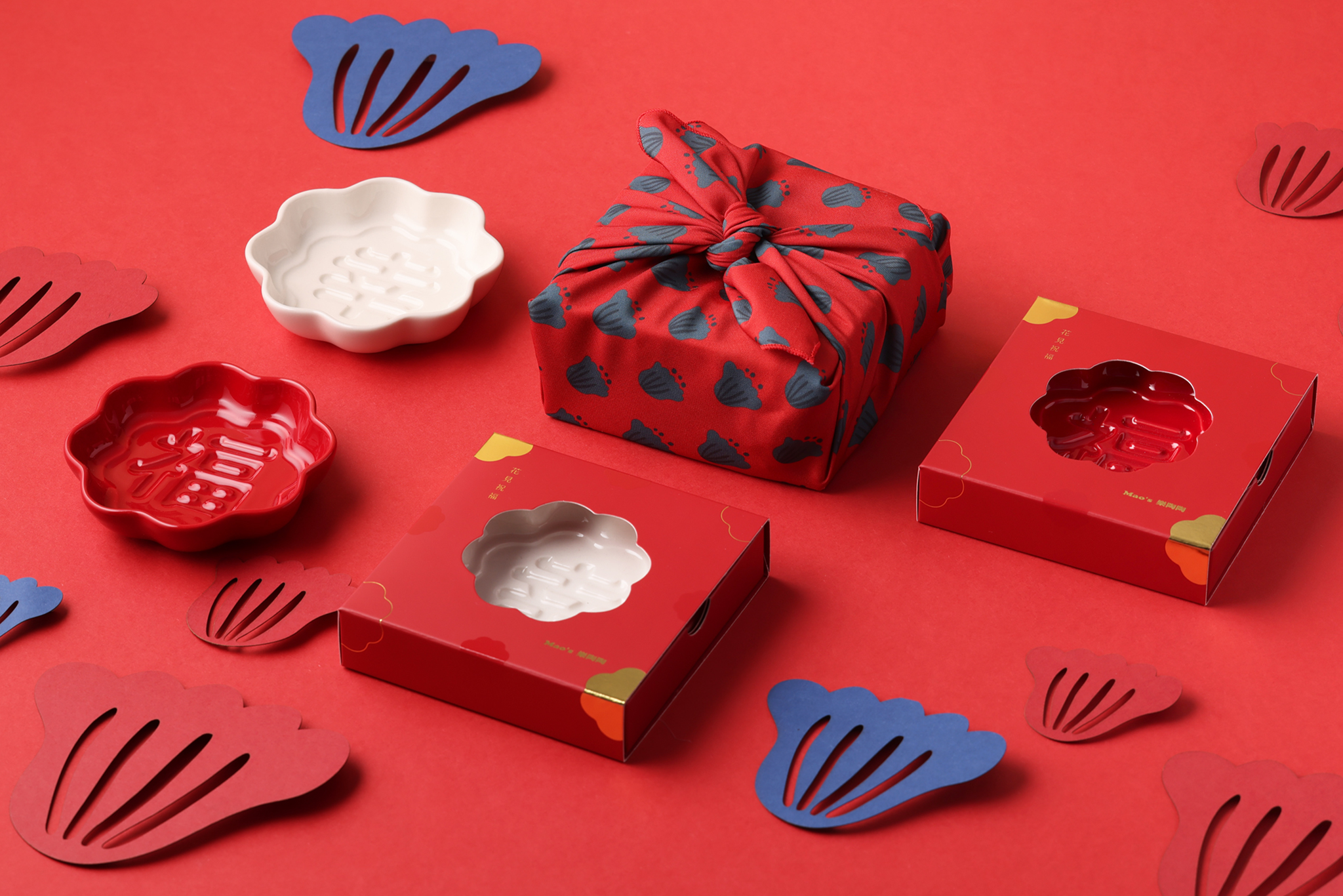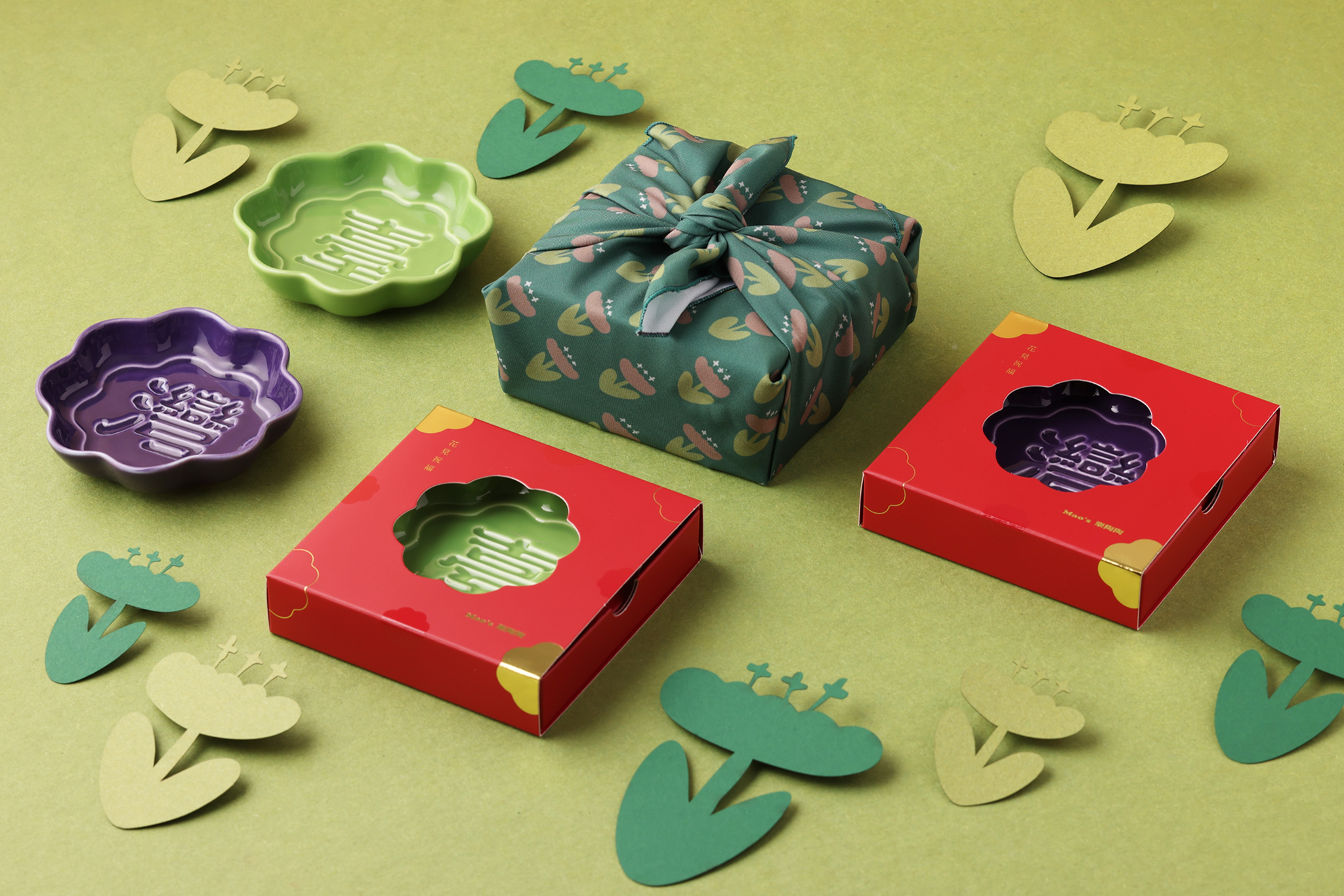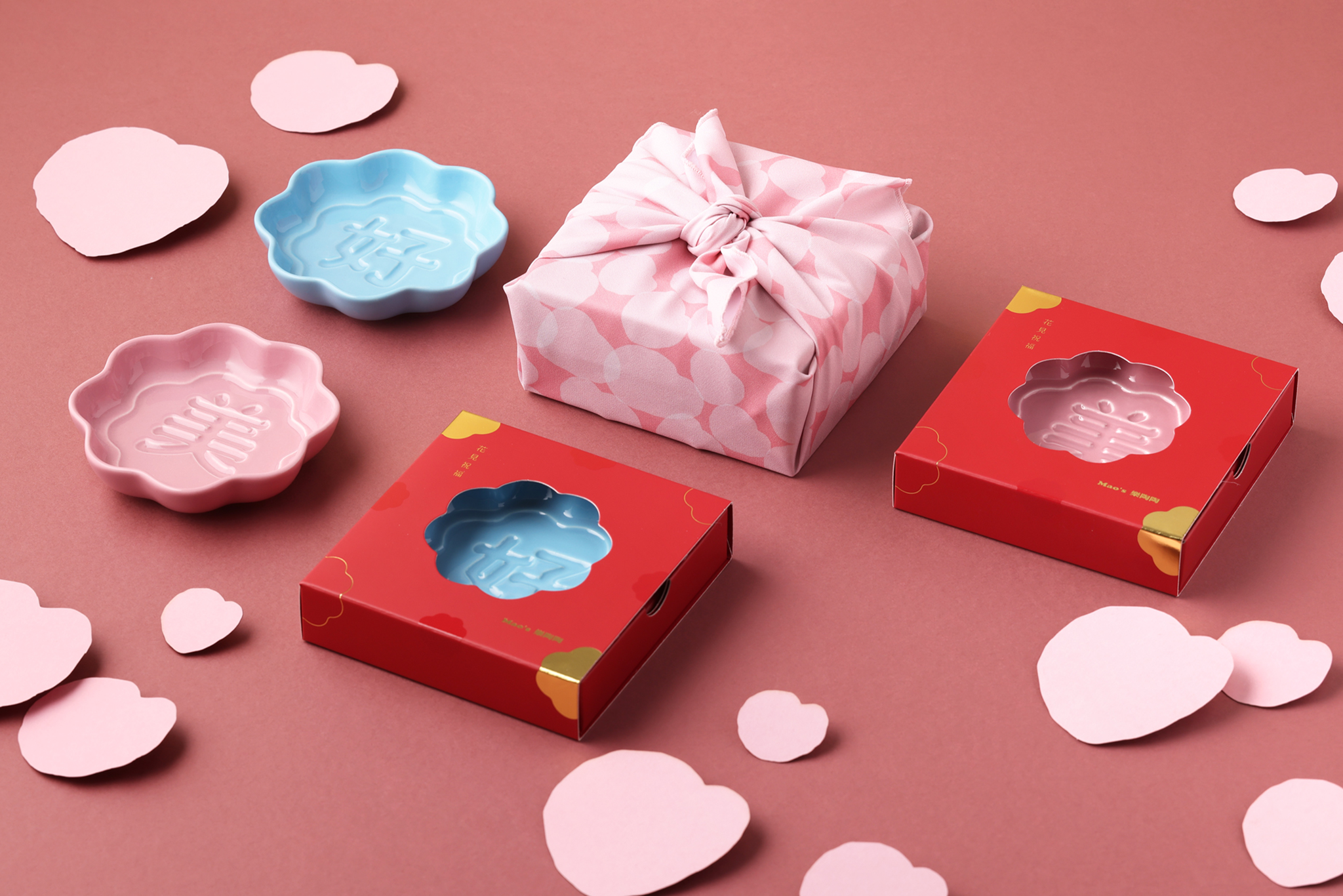 「Mao’s樂陶陶」以日本傳統的風呂敷包裝為發想,將對重要的人的心意,包裹在花見祝福醬油碟裡,讓每一層摺疊,都藏著愛與感謝。