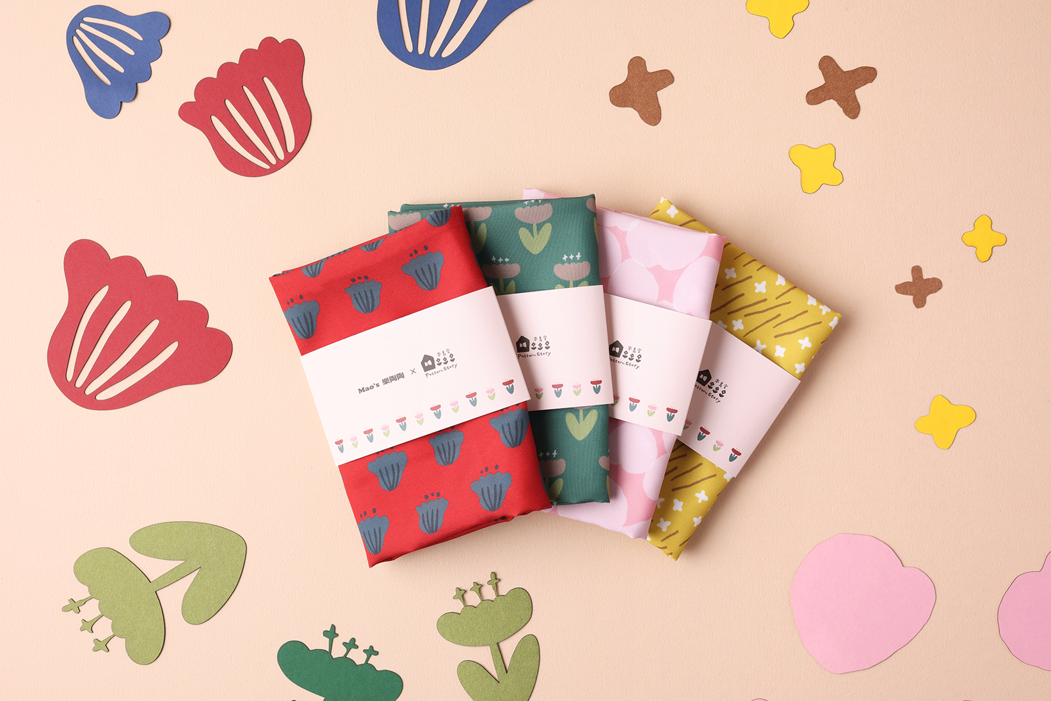 ▲ 「Mao's樂陶陶」與印花品牌「本島舍印花設計工作室」合作,溫暖多采的花色,一起包裝你的心意。