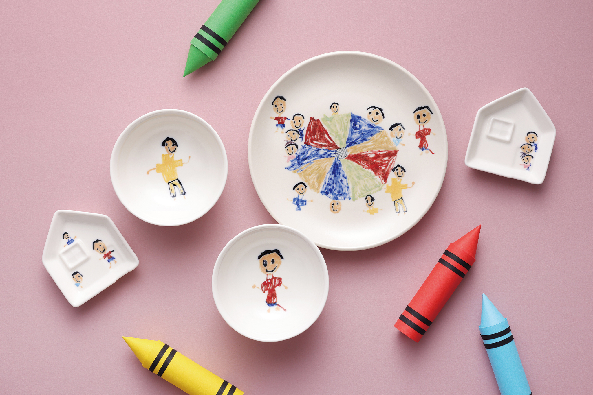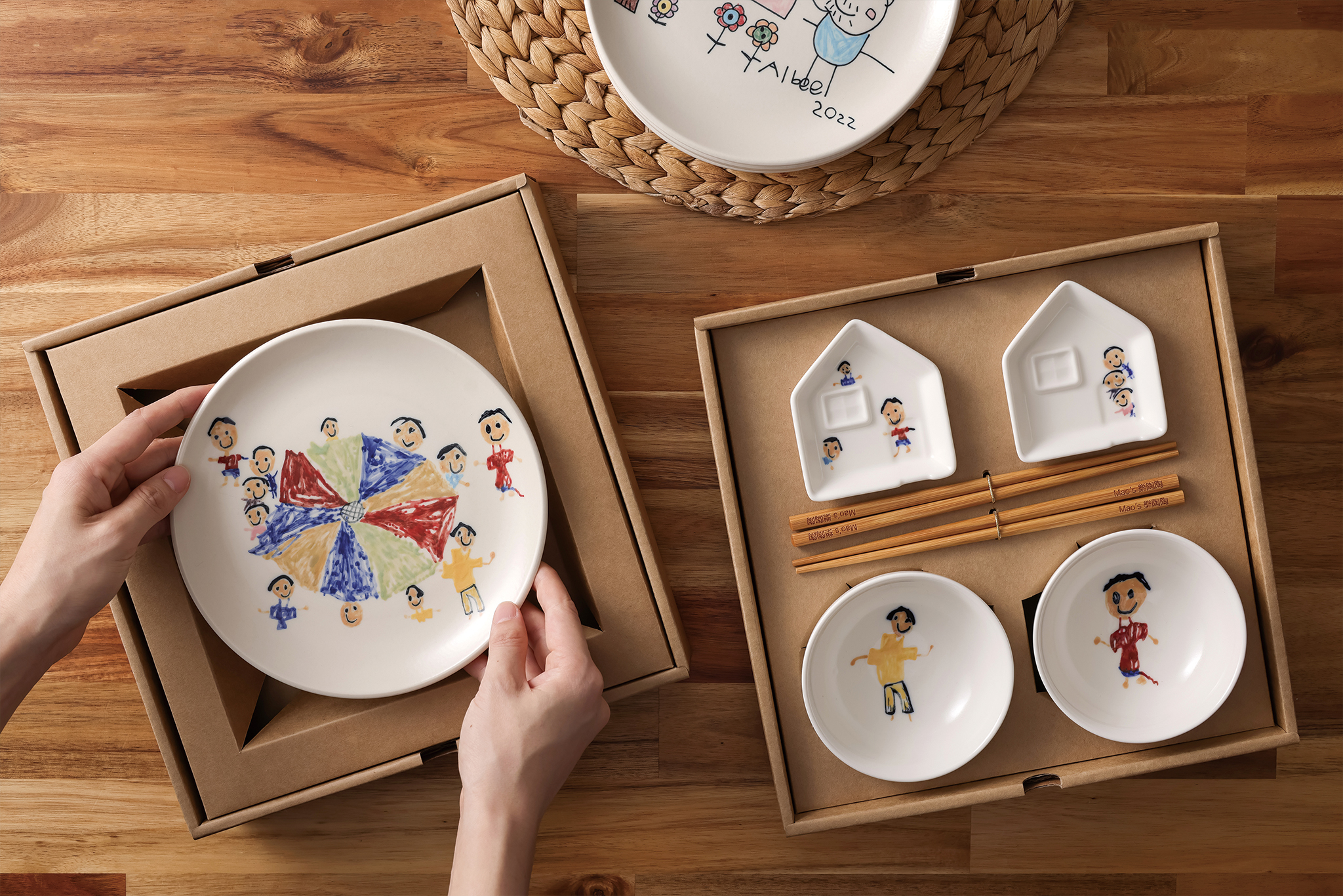 ▲ 孩子畫畫餐具組系列,將孩子的圖畫變成全家人的餐桌風景。