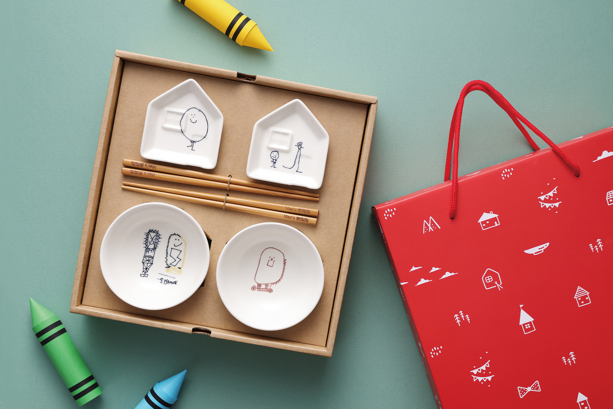 ▲ 孩子畫畫雙碗醬油碟彭派禮盒組