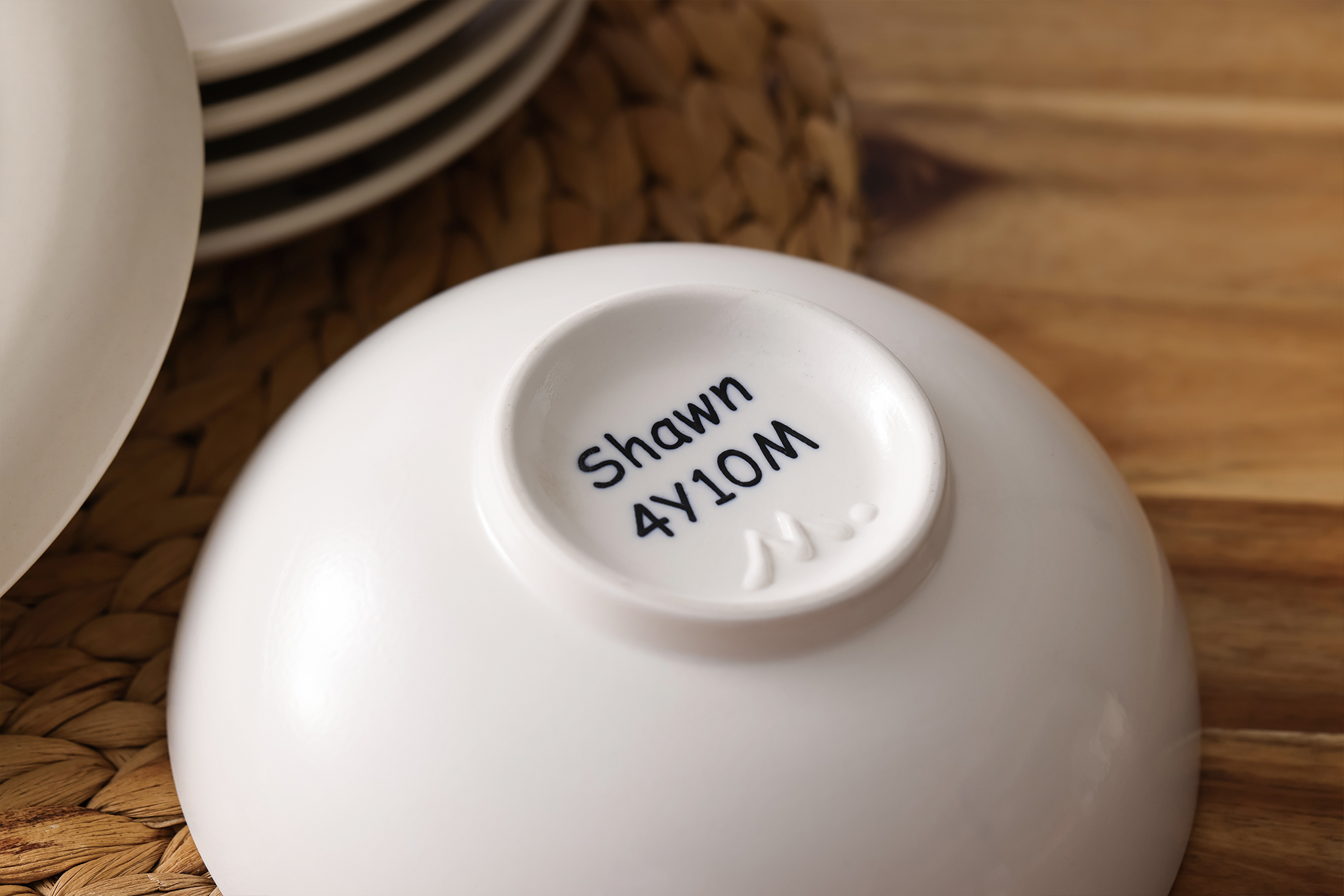 ▲ 除了孩子的圖案外,也可以在小碗、醬油碟底部背後加上年齡(+100元,如4Y6M)或日期(+100元),讓孩子的紀念更加完美。