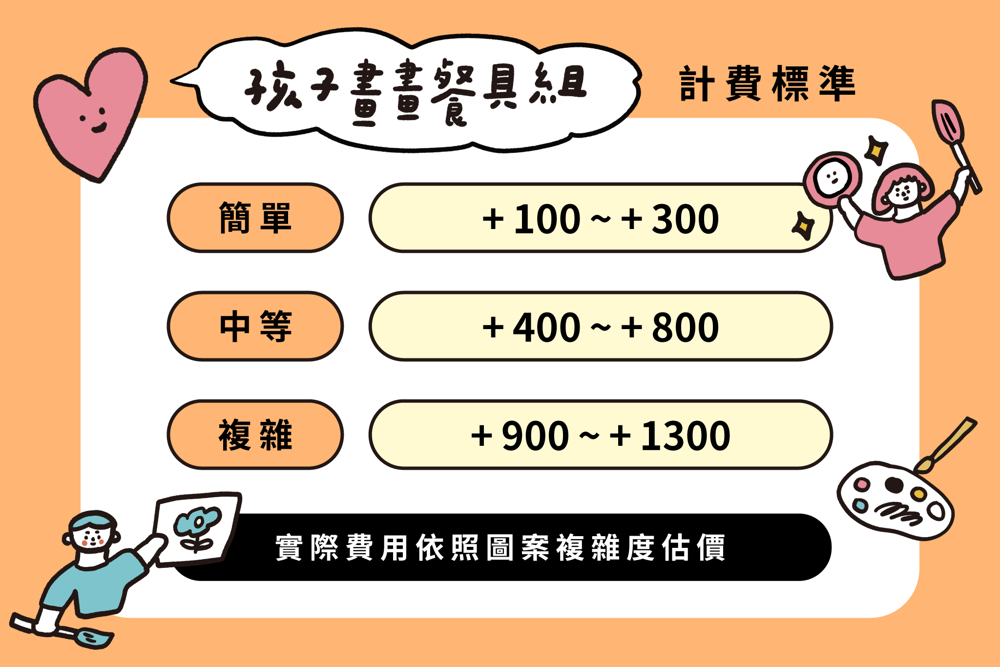 ▲ 請提供孩子圖畫的照片,我們會依照圖畫的複雜度提供報價,碗盤基本費+圖案複雜度費用=商品總金額。