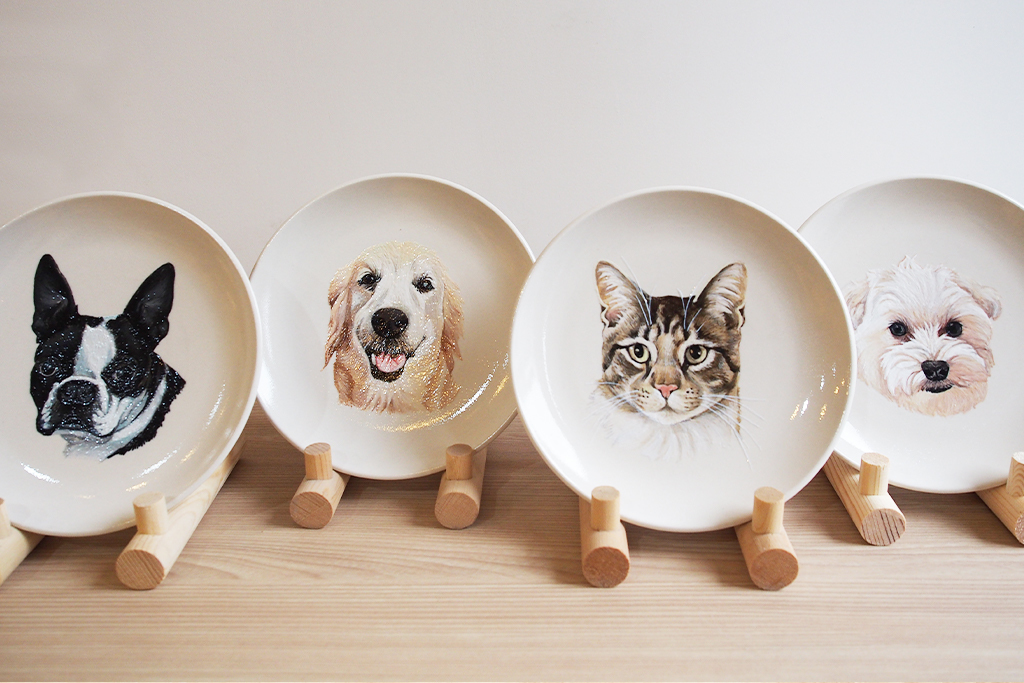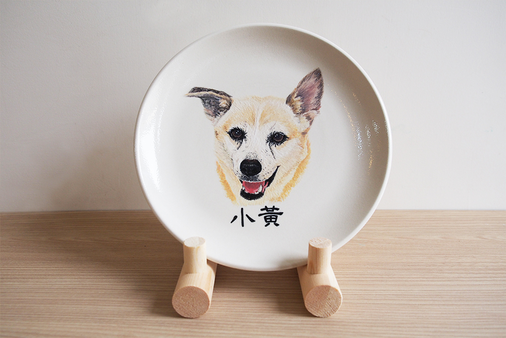 ▲ 【訂製化款式】寫實寵物紀念盤範例,提供寵物正面清楚照片+寵物中文名字或英文名字。