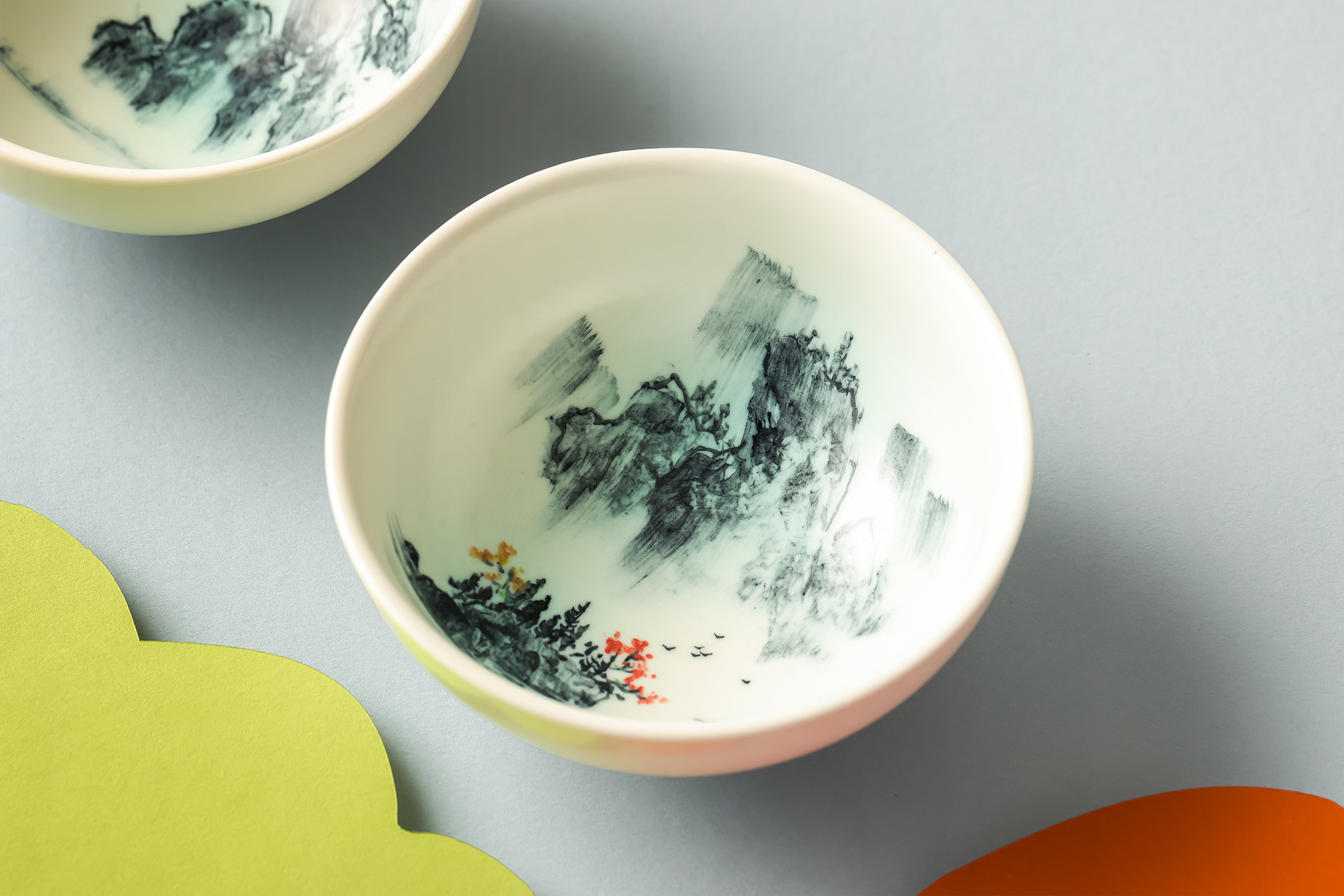▲ 山水系列碗組,一筆一畫手工繪製而成,讓山水藝術之美悠遊於碗中。
