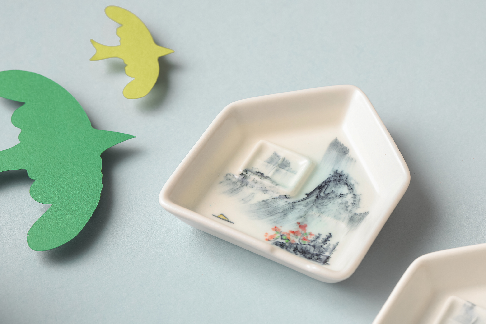▲ 山水系列醬油碟,一筆一畫手工繪製而成,讓美食增添更多自然之美。