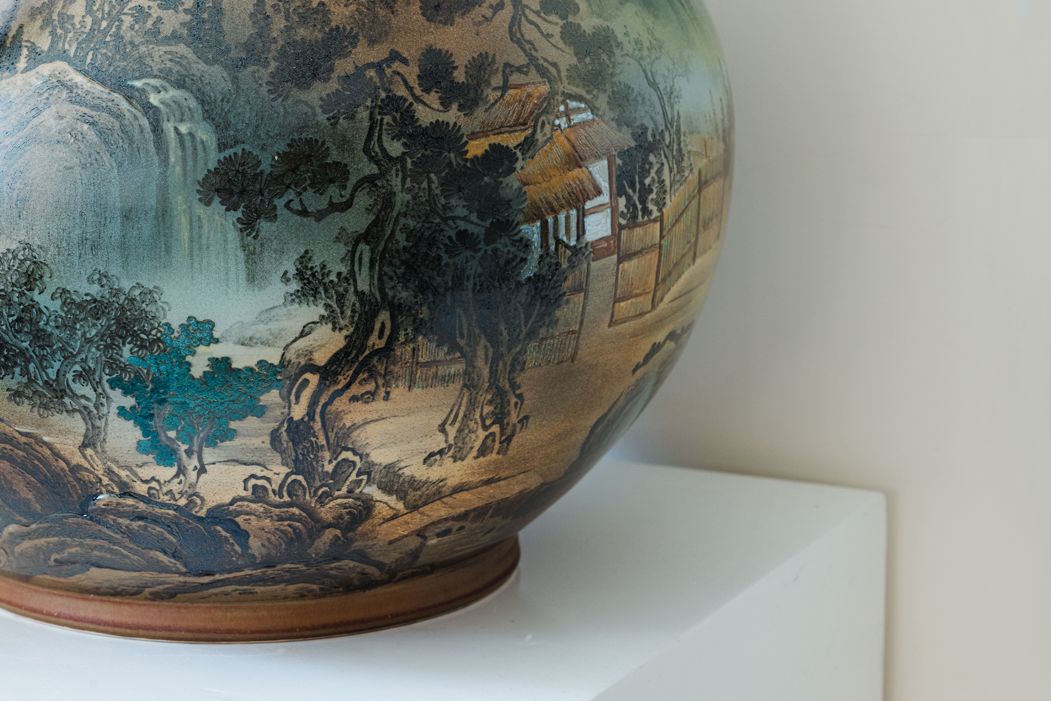 山水系列為「祥鑫窯」代表之作,研習多年故宮古畫,以細膩的畫工呈現雲霧繚繞、山林交錯、遠山近水立體之感,將山為德、水為性的內在修為融入其中,刻畫出文人山水虛無縹緲、崇尚自然之壯闊意境。