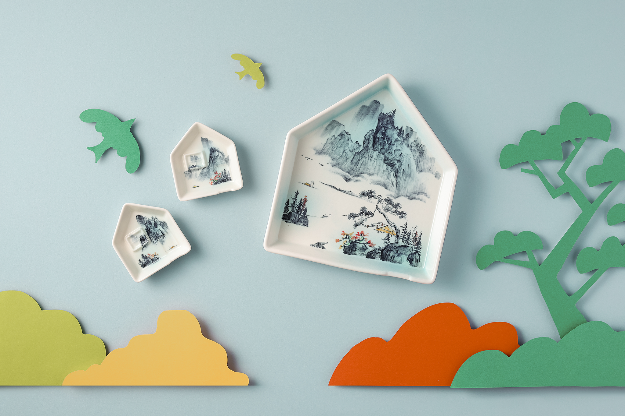 ▲ 山水系列大房子餐盤,一筆一畫手工繪製而成,為人生盛裝更多美好的滋味。