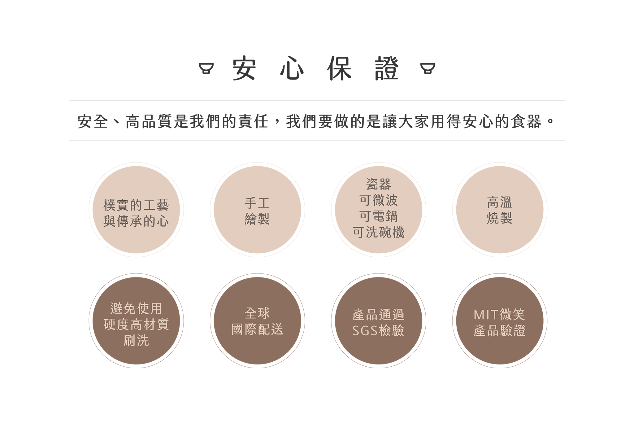 1.本商品為食用級專用瓷器,可放熱食,適用於洗碗機、電鍋、微波爐、烘碗機,正常使用下品質安全無虞。